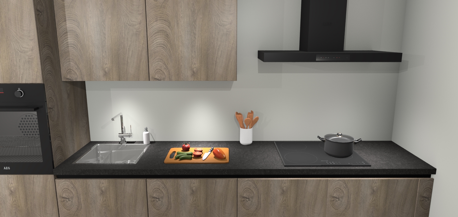 - Uitsparing van kookplaat, spoelbak en kraan dient u zelf te verzorgen.