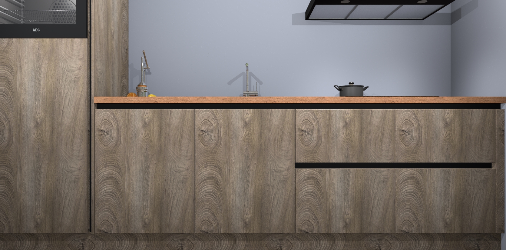 Maak kennis met de gloednieuwe Cantaro Eiken keuken Tokelau! Met zijn chique, moderne uitstraling is dit product perfect voor iedereen die een warm en toch strak design voor zijn huis wil.