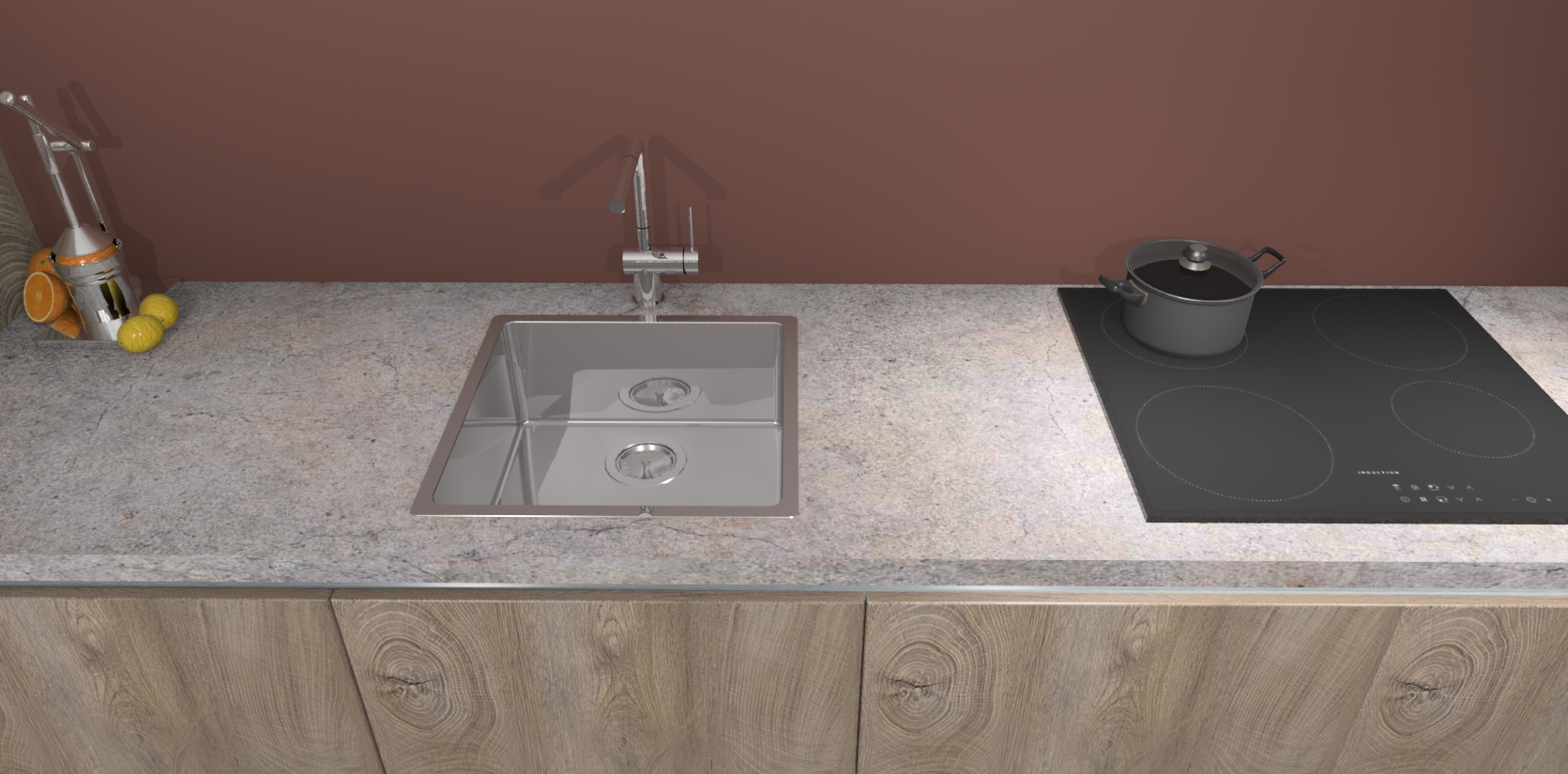 • Uitsparing van kookplaat, spoelbak en kraan dient u zelf te verzorgen.