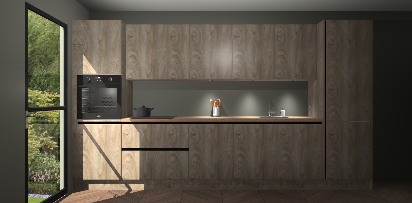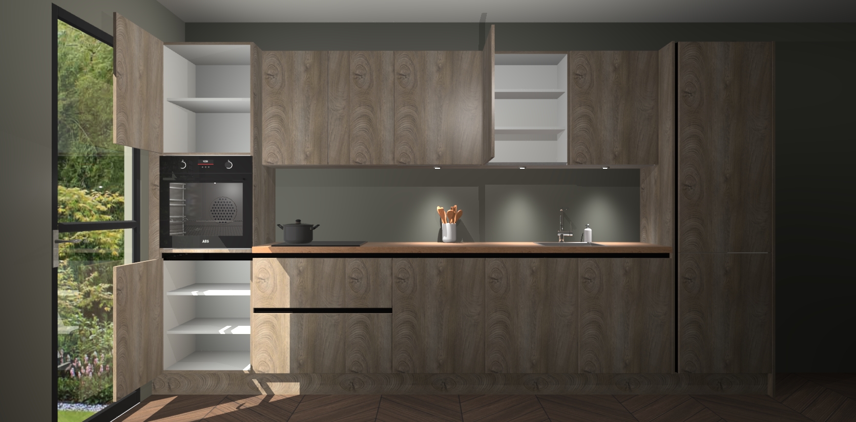 Dit is de perfecte keuken voor wie op zoek is naar een luxueuze stijl zonder zijn portemonnee te legen! Het chique ontwerp van de cantaro eiken greeploze keuken Wels voegt dat vleugje verfijning toe aan elk huis. Het gemak van voorgemonteerde kasten bespaart u talloze uren tijd en energie, zodat u veel sneller dan verwacht kunt beginnen te genieten van uw prachtige nieuwe keuken. Bovendien bedraagt de levertijd slechts 7 weken.