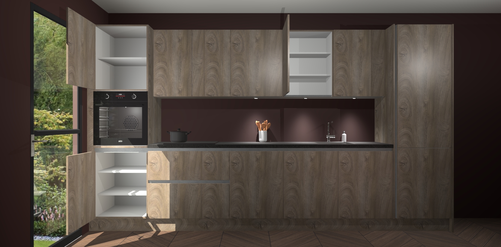 Dit is de perfecte keuken voor wie op zoek is naar een luxueuze stijl zonder zijn portemonnee te legen! Het chique ontwerp van de cantaro eiken greeploze keuken Wels voegt dat vleugje verfijning toe aan elk huis. Het gemak van voorgemonteerde kasten bespaart u talloze uren tijd en energie, zodat u veel sneller dan verwacht kunt beginnen te genieten van uw prachtige nieuwe keuken. Bovendien bedraagt de levertijd slechts 7 weken.
