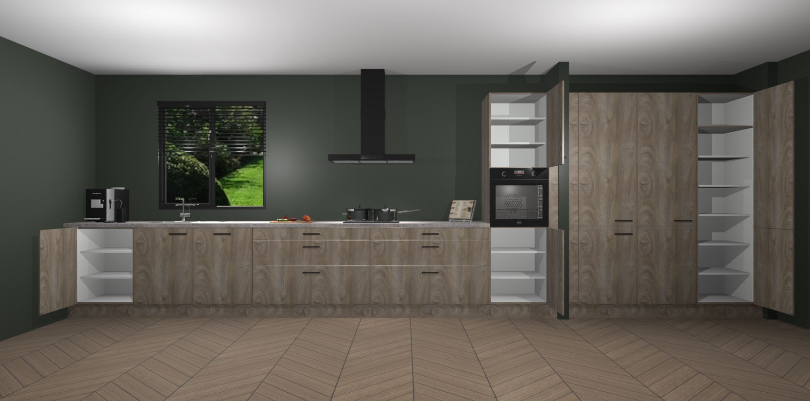 Een stijlvolle en praktische keuken als deze mag gezien worden. Dankzij de prachtige matte afwerking wordt de keuken gemakkelijk het middelpunt van uw huis - hij ziet er geweldig uit onder allerlei lichtomstandigheden, van dag tot nacht!