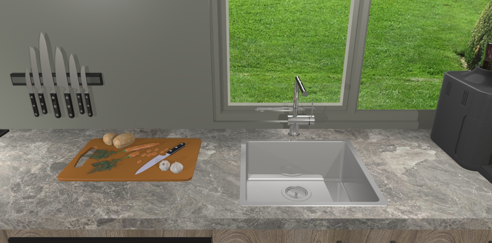 - De spoelbak is nog niet in gevreesd. Dit dient tijdens het werk gedaan te worden