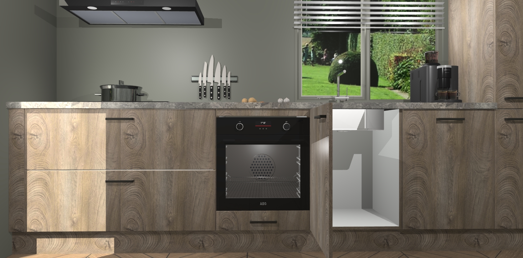 - Ombouw om de oven onder het werkblad te kunnen monteren