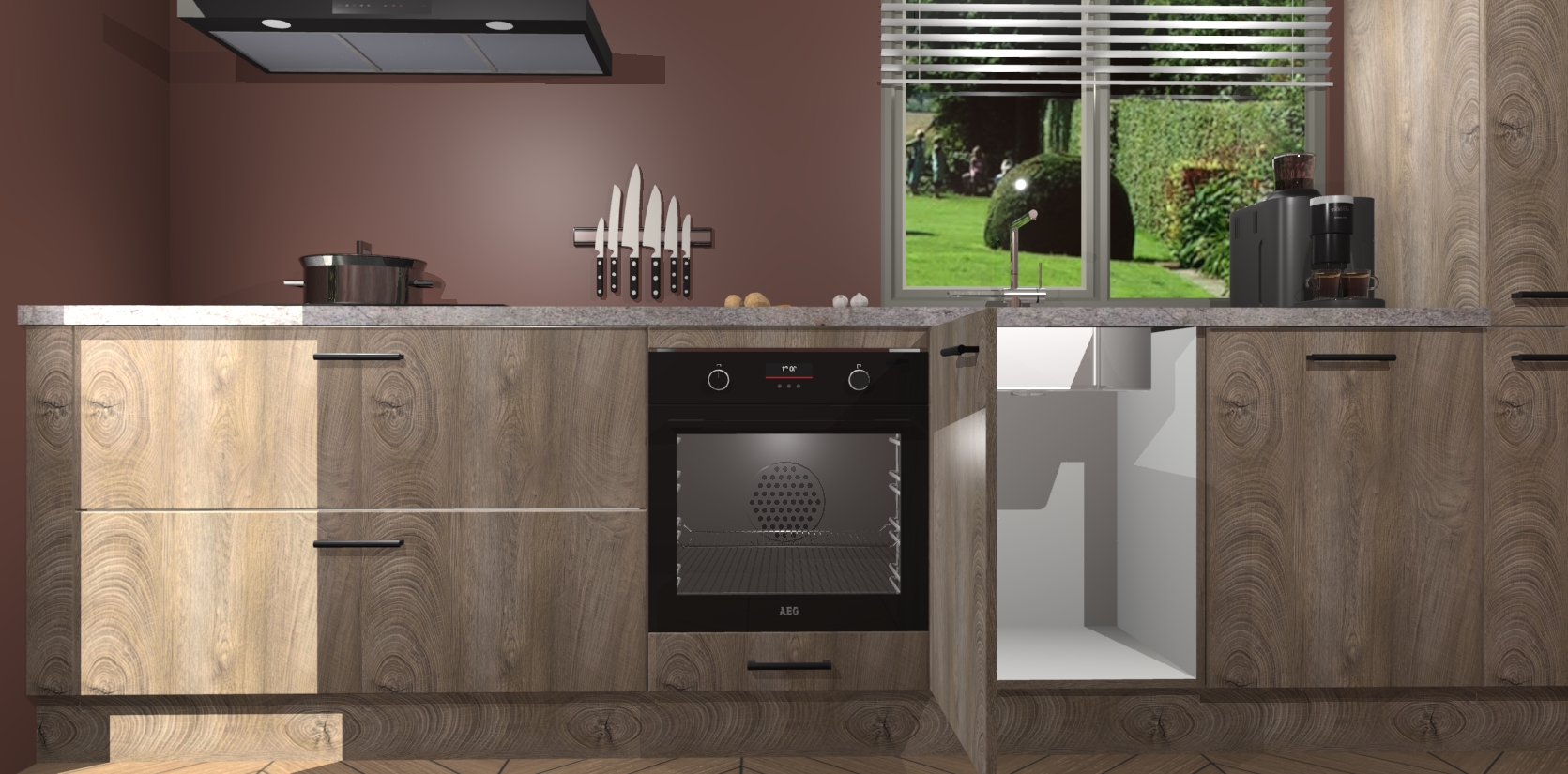 - Ombouw om de oven onder het werkblad te kunnen monteren