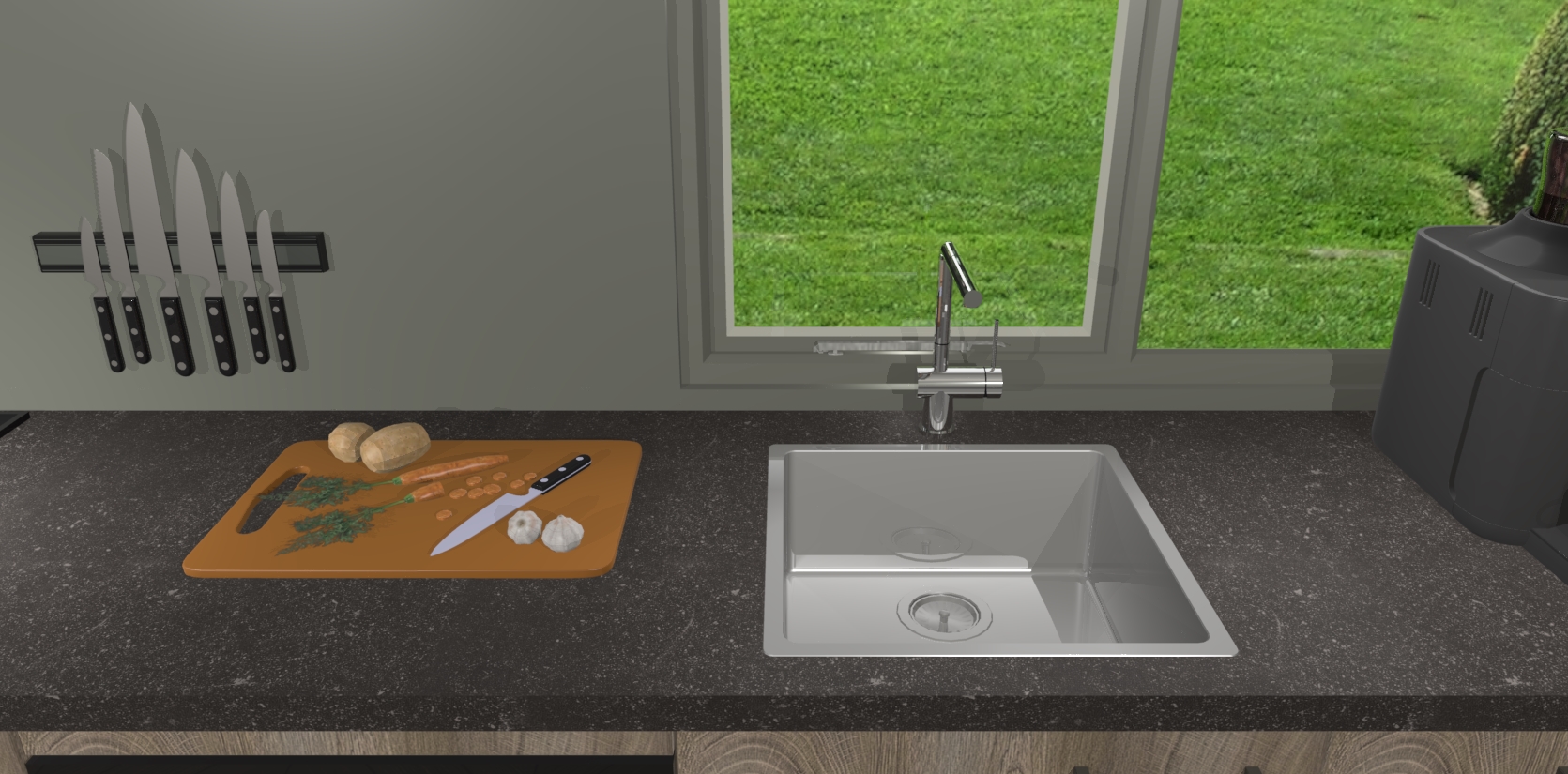 - De spoelbak is nog niet in gevreesd. Dit dient tijdens het werk gedaan te worden