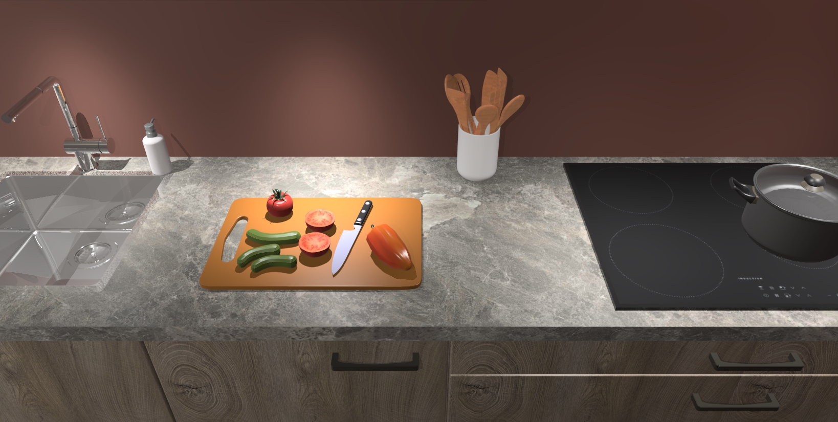 - Uitsparing van kookplaat, spoelbak en kraan dient u zelf te verzorgen.