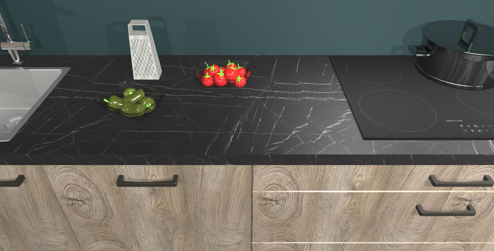 - Bij een hoekwerkblad zijn de hoeken in gevreesd en op maat gemaakt