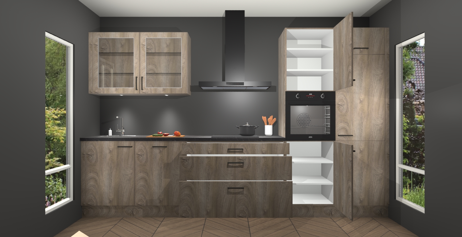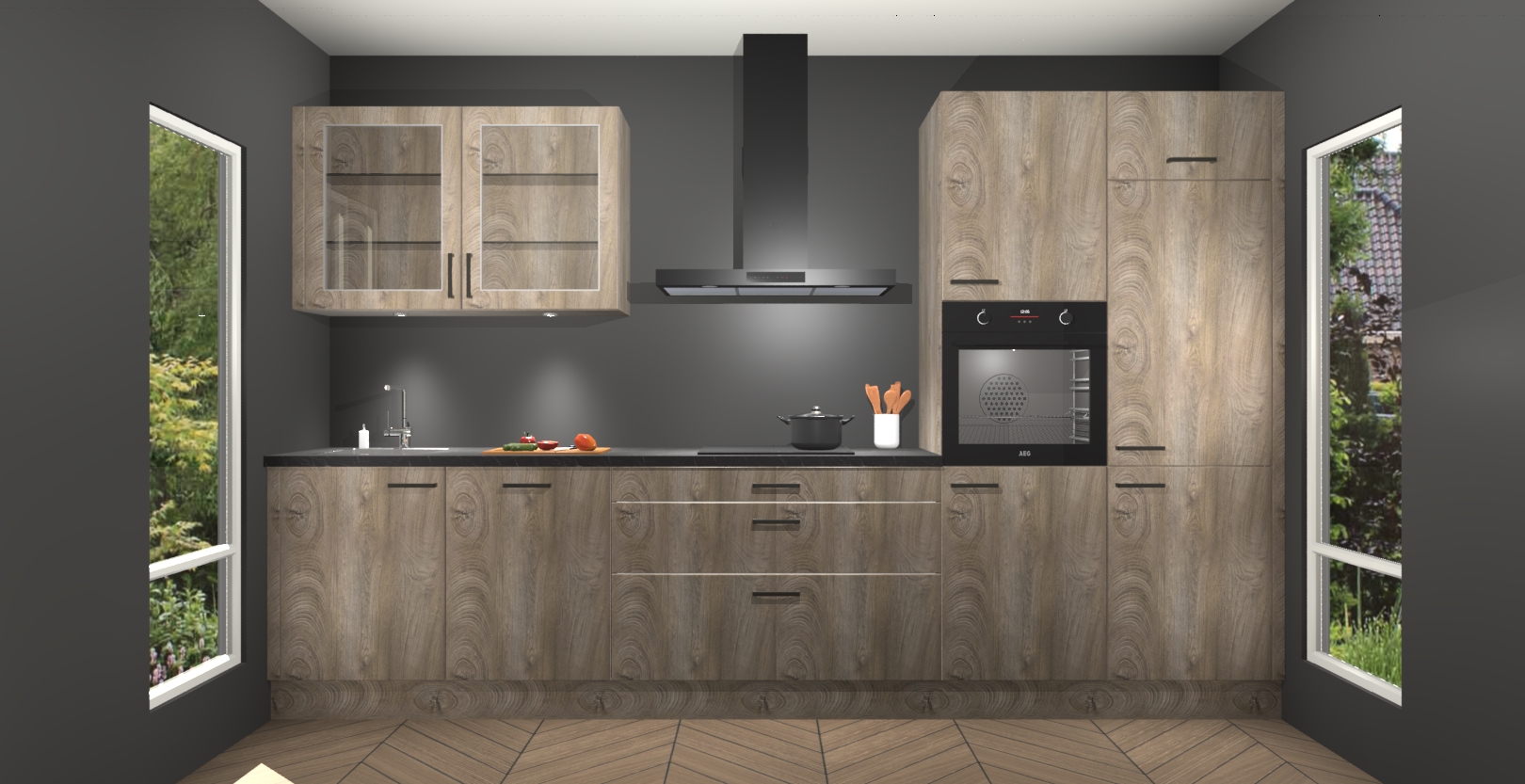 De cantaro eiken keuken Cairo is de perfecte mix van modern en tijdloos design. Met zijn prachtige glazen deuren op de bovenkastjes voegt hij echt iets speciaals en unieks toe aan elke keuken. En met vijf ingebouwde apparaten inbegrepen - een oven, inductiekookplaat, afzuigkap, vaatwasser en koelkast - kunt u deze keuken echt helemaal van uzelf maken! U kunt na bestelling ook upgraden naar AEG voor een nog hogere kwaliteitservaring.