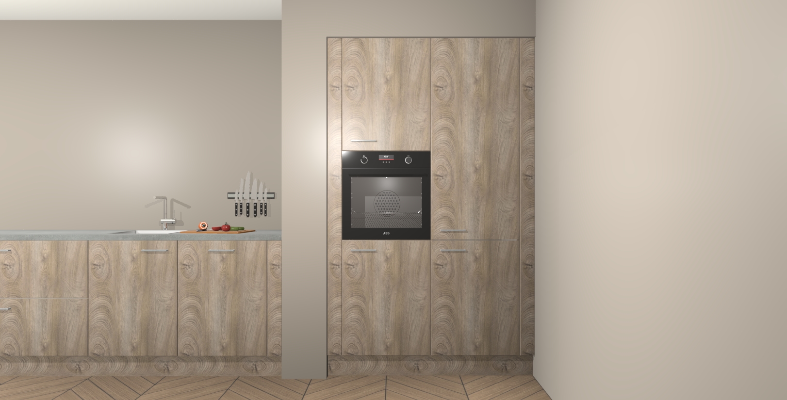 Maak kennis met de Cantaro Eiken keuken Calgary - de perfecte aanvulling voor uw moderne keuken! Ervaar tijdloos design, elegantie en een chique uitstraling met onze handgrepen, soft-close deuren en veel opbergruimte. Dit alles wordt aangeboden tegen een vaste lage prijs voor ongeëvenaarde Duitse keukenkwaliteit!