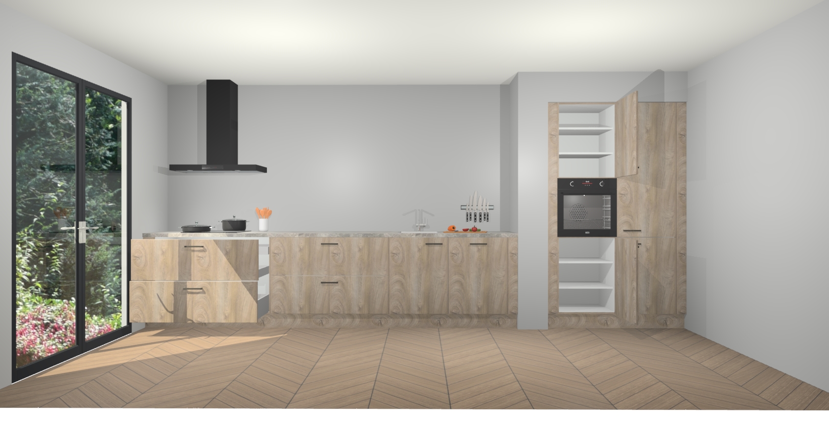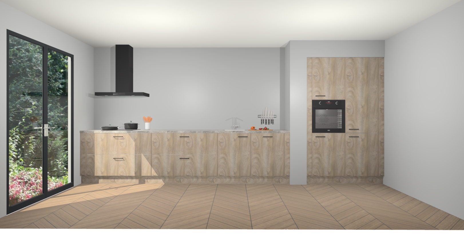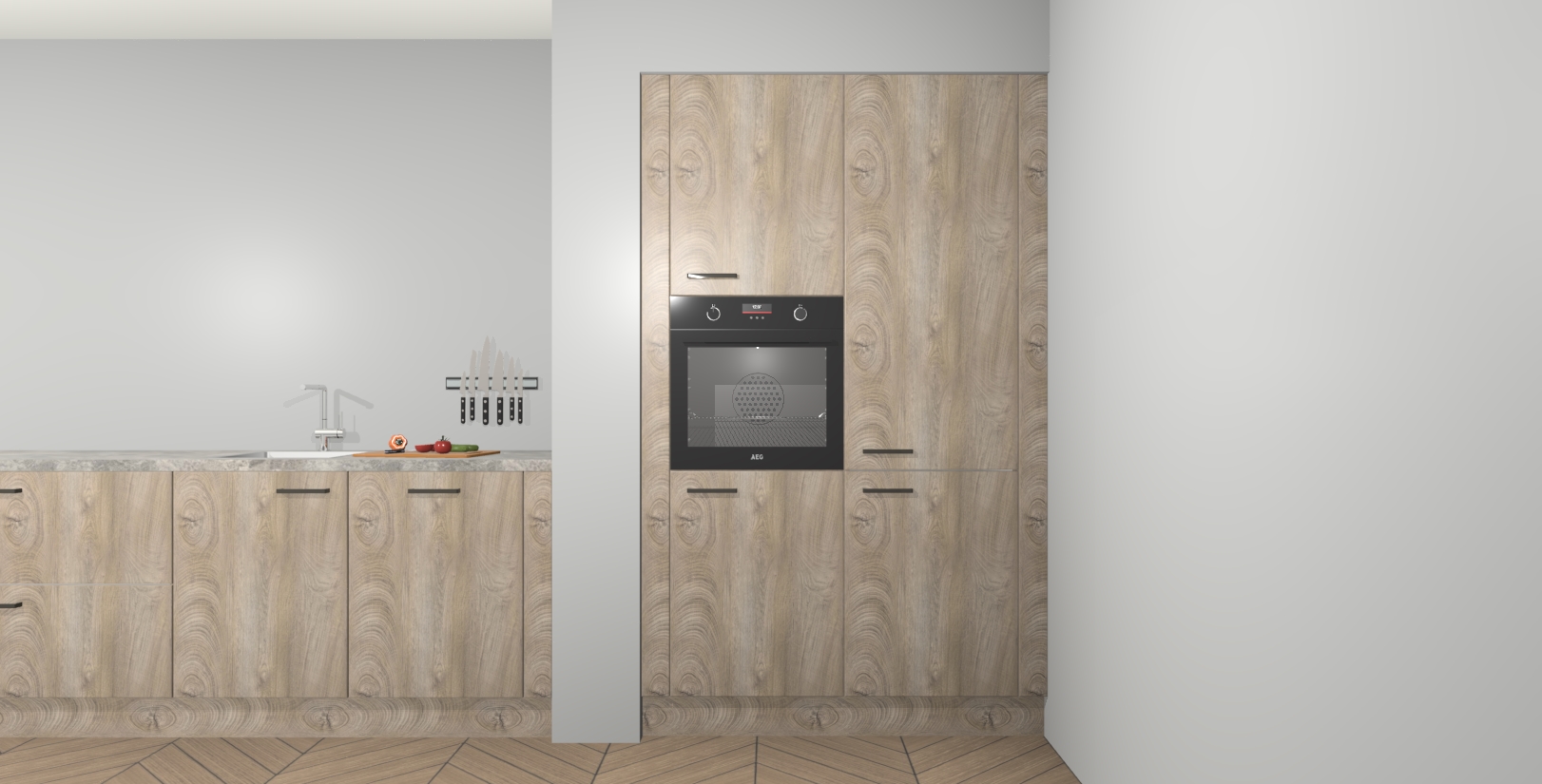 Maak kennis met de Cantaro Eiken keuken Calgary - de perfecte aanvulling voor uw moderne keuken! Ervaar tijdloos design, elegantie en een chique uitstraling met onze handgrepen, soft-close deuren en veel opbergruimte. Dit alles wordt aangeboden tegen een vaste lage prijs voor ongeëvenaarde Duitse keukenkwaliteit!