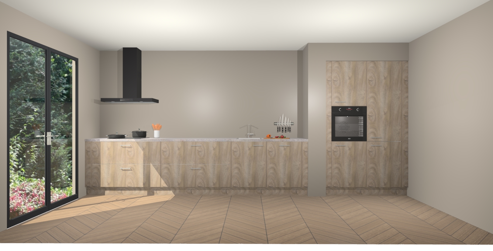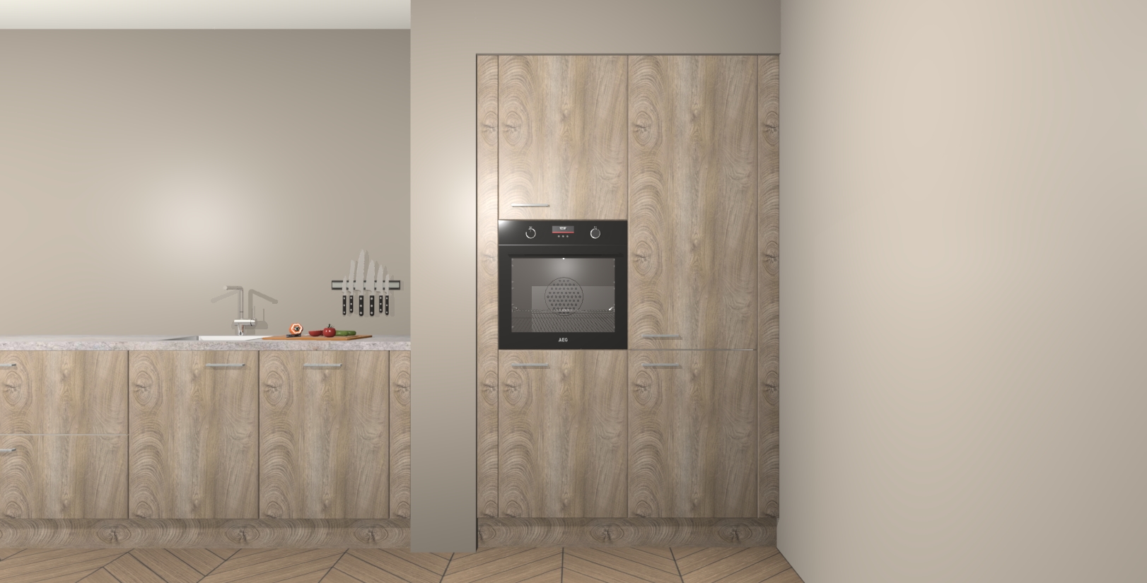 Maak kennis met de Cantaro Eiken keuken Calgary - de perfecte aanvulling voor uw moderne keuken! Ervaar tijdloos design, elegantie en een chique uitstraling met onze handgrepen, soft-close deuren en veel opbergruimte. Dit alles wordt aangeboden tegen een vaste lage prijs voor ongeëvenaarde Duitse keukenkwaliteit!