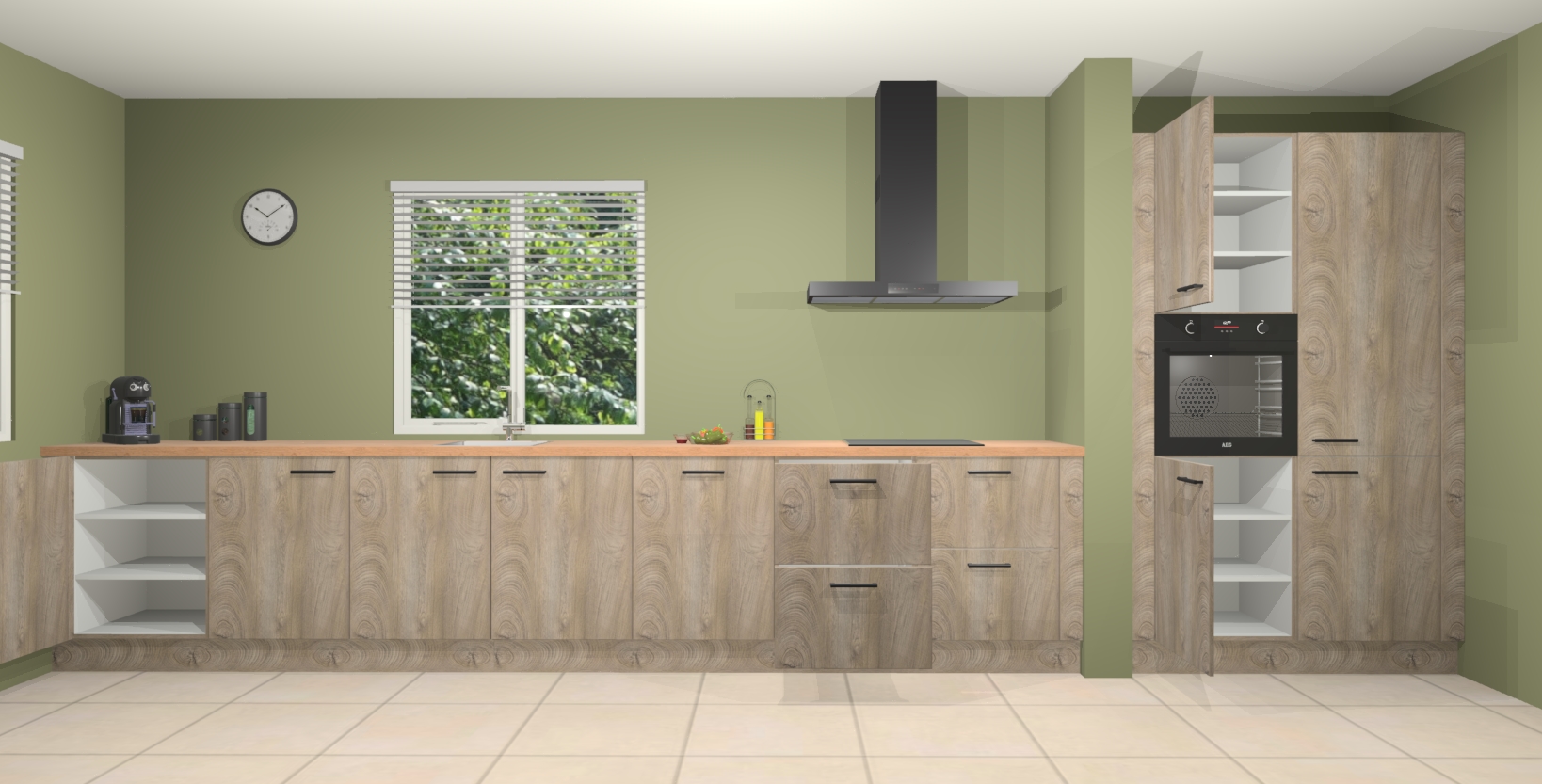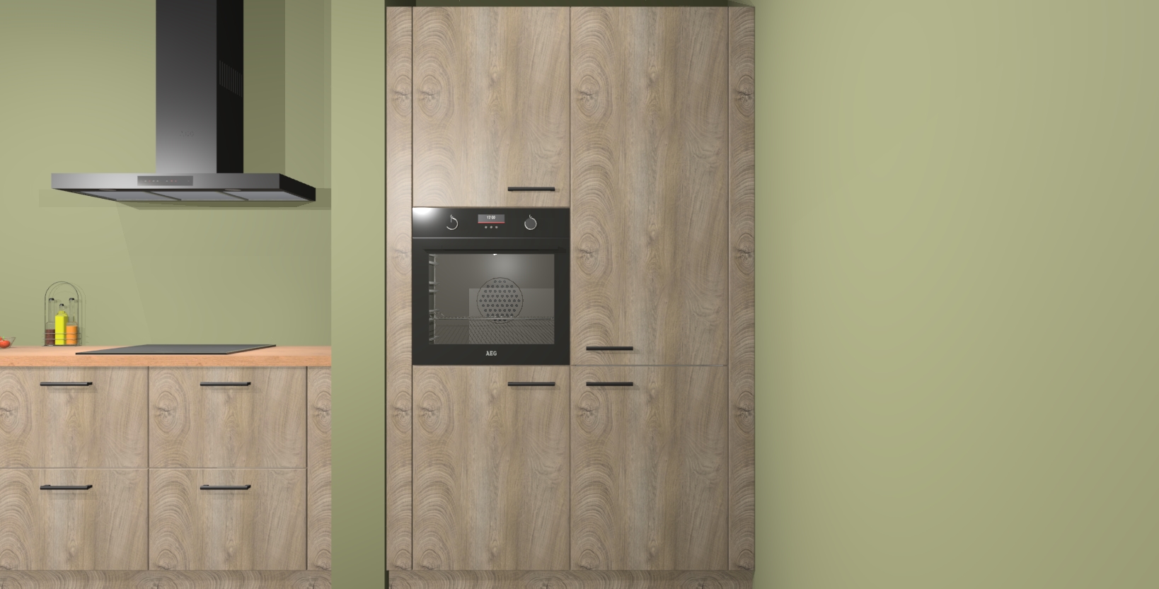 Maak kennis met de Cantaro eiken keuken Elzas - de perfecte aanvulling voor uw moderne keuken! Ervaar tijdloos design, elegantie en een chique uitstraling met onze handgrepen, soft-close deuren en veel opbergruimte. Dit alles wordt aangeboden tegen een vaste lage prijs voor ongeëvenaarde Duitse keukenkwaliteit!