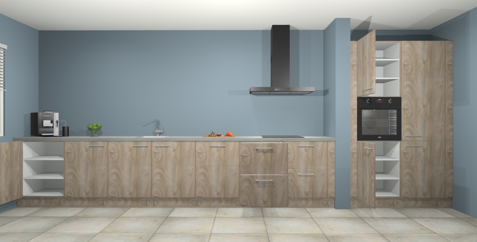 Maak kennis met de Cantaro eiken keuken Elzas - de perfecte aanvulling voor uw moderne keuken! Ervaar tijdloos design, elegantie en een chique uitstraling met onze handgrepen, soft-close deuren en veel opbergruimte. Dit alles wordt aangeboden tegen een vaste lage prijs voor ongeëvenaarde Duitse keukenkwaliteit!