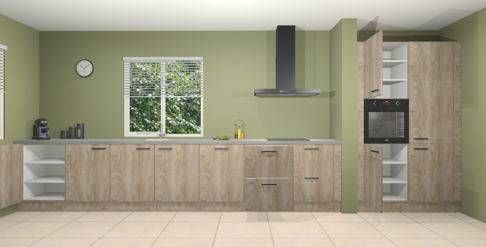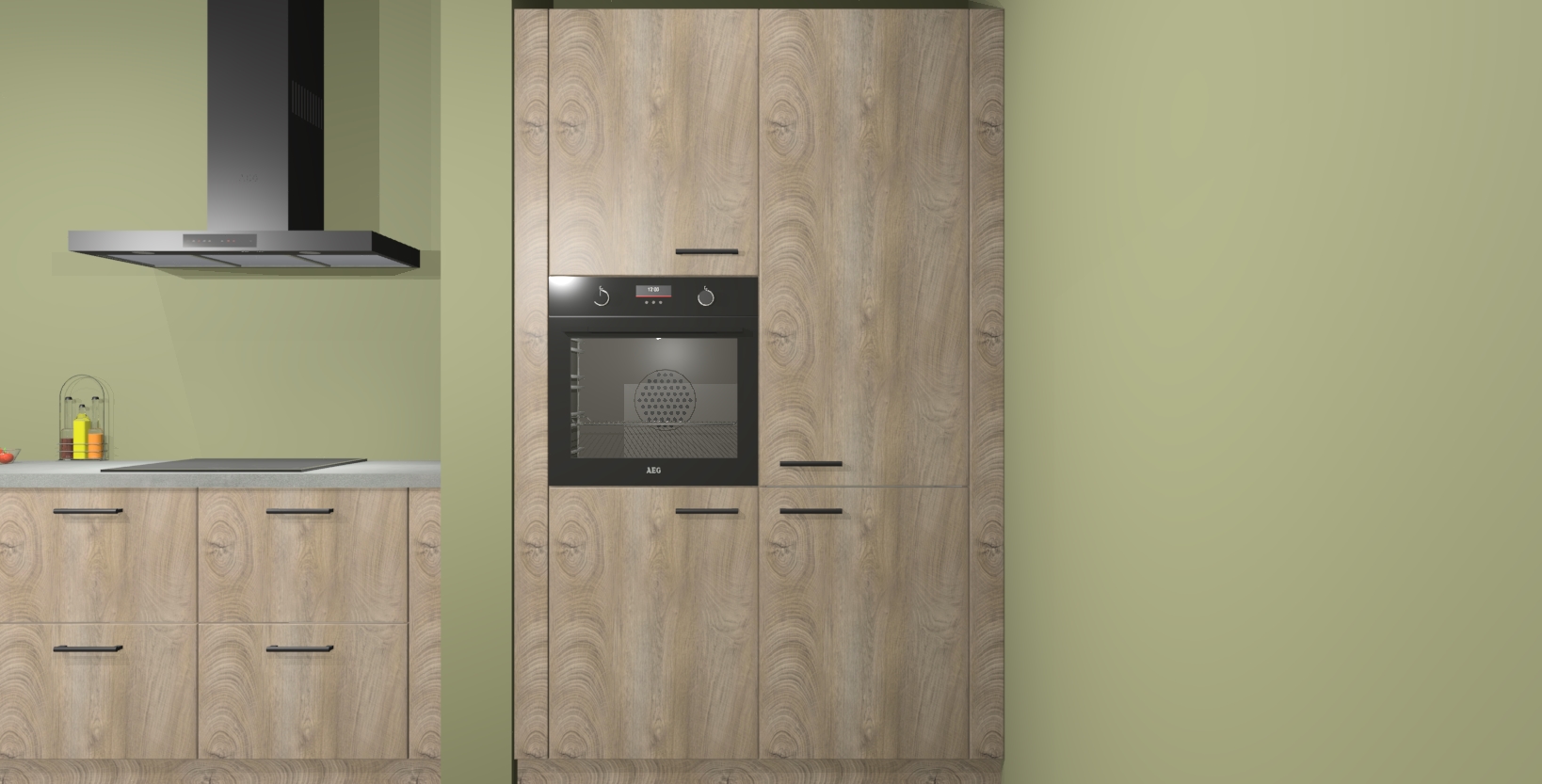 Maak kennis met de Cantaro eiken keuken Elzas - de perfecte aanvulling voor uw moderne keuken! Ervaar tijdloos design, elegantie en een chique uitstraling met onze handgrepen, soft-close deuren en veel opbergruimte. Dit alles wordt aangeboden tegen een vaste lage prijs voor ongeëvenaarde Duitse keukenkwaliteit!