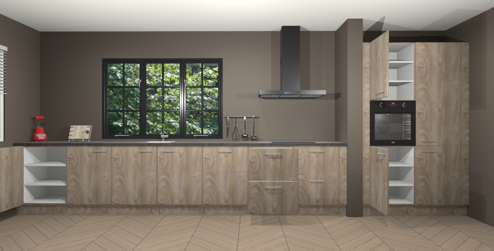 Maak kennis met de Cantaro eiken keuken Elzas - de perfecte aanvulling voor uw moderne keuken! Ervaar tijdloos design, elegantie en een chique uitstraling met onze handgrepen, soft-close deuren en veel opbergruimte. Dit alles wordt aangeboden tegen een vaste lage prijs voor ongeëvenaarde Duitse keukenkwaliteit!