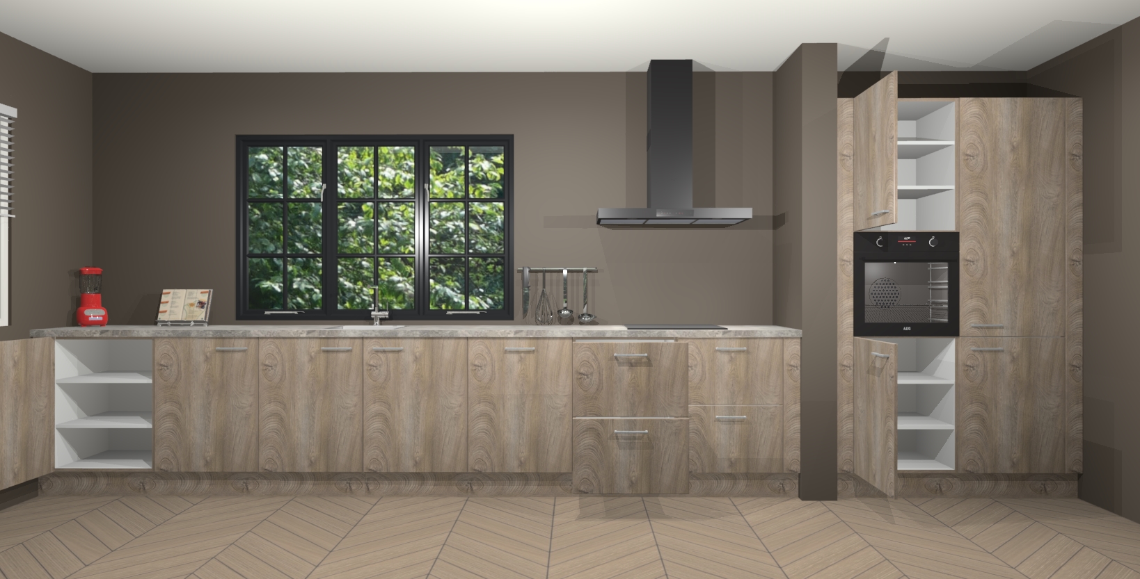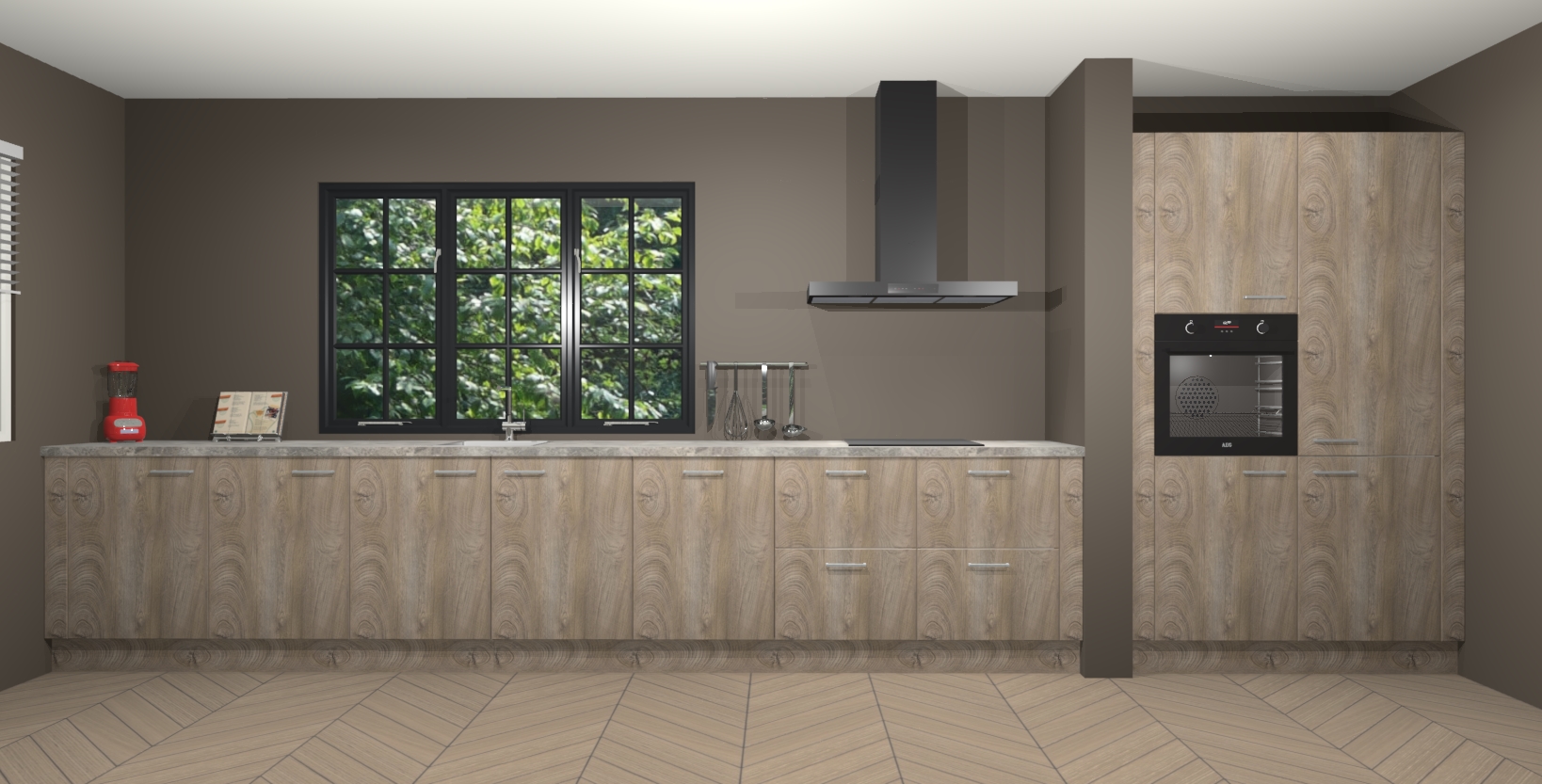 Maak kennis met de Cantaro eiken keuken Elzas - de perfecte aanvulling voor uw moderne keuken! Ervaar tijdloos design, elegantie en een chique uitstraling met onze handgrepen, soft-close deuren en veel opbergruimte. Dit alles wordt aangeboden tegen een vaste lage prijs voor ongeëvenaarde Duitse keukenkwaliteit!