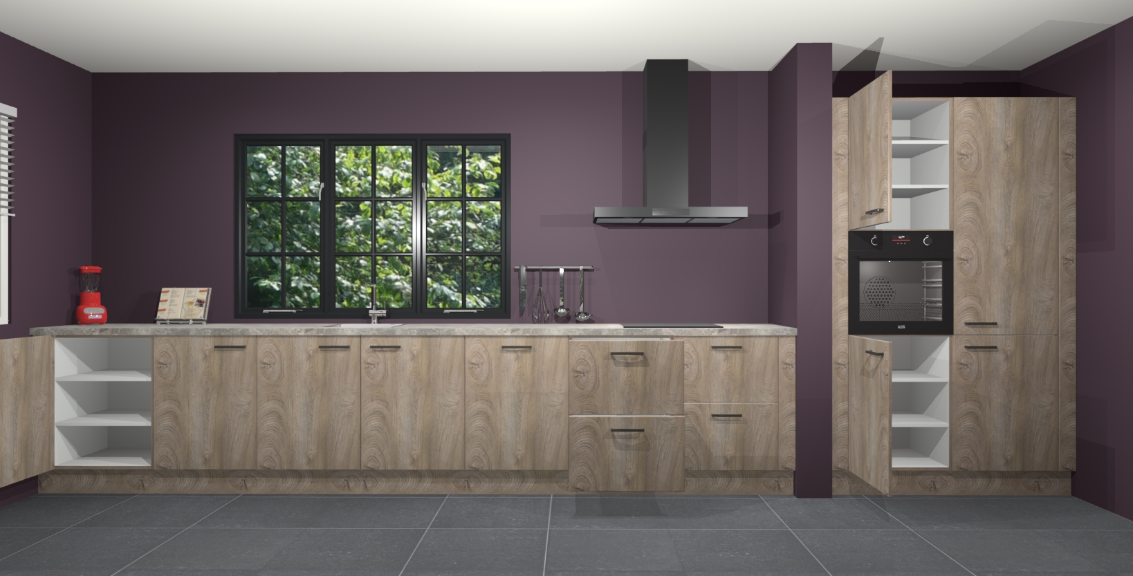 Maak kennis met de Cantaro eiken keuken Elzas - de perfecte aanvulling voor uw moderne keuken! Ervaar tijdloos design, elegantie en een chique uitstraling met onze handgrepen, soft-close deuren en veel opbergruimte. Dit alles wordt aangeboden tegen een vaste lage prijs voor ongeëvenaarde Duitse keukenkwaliteit!