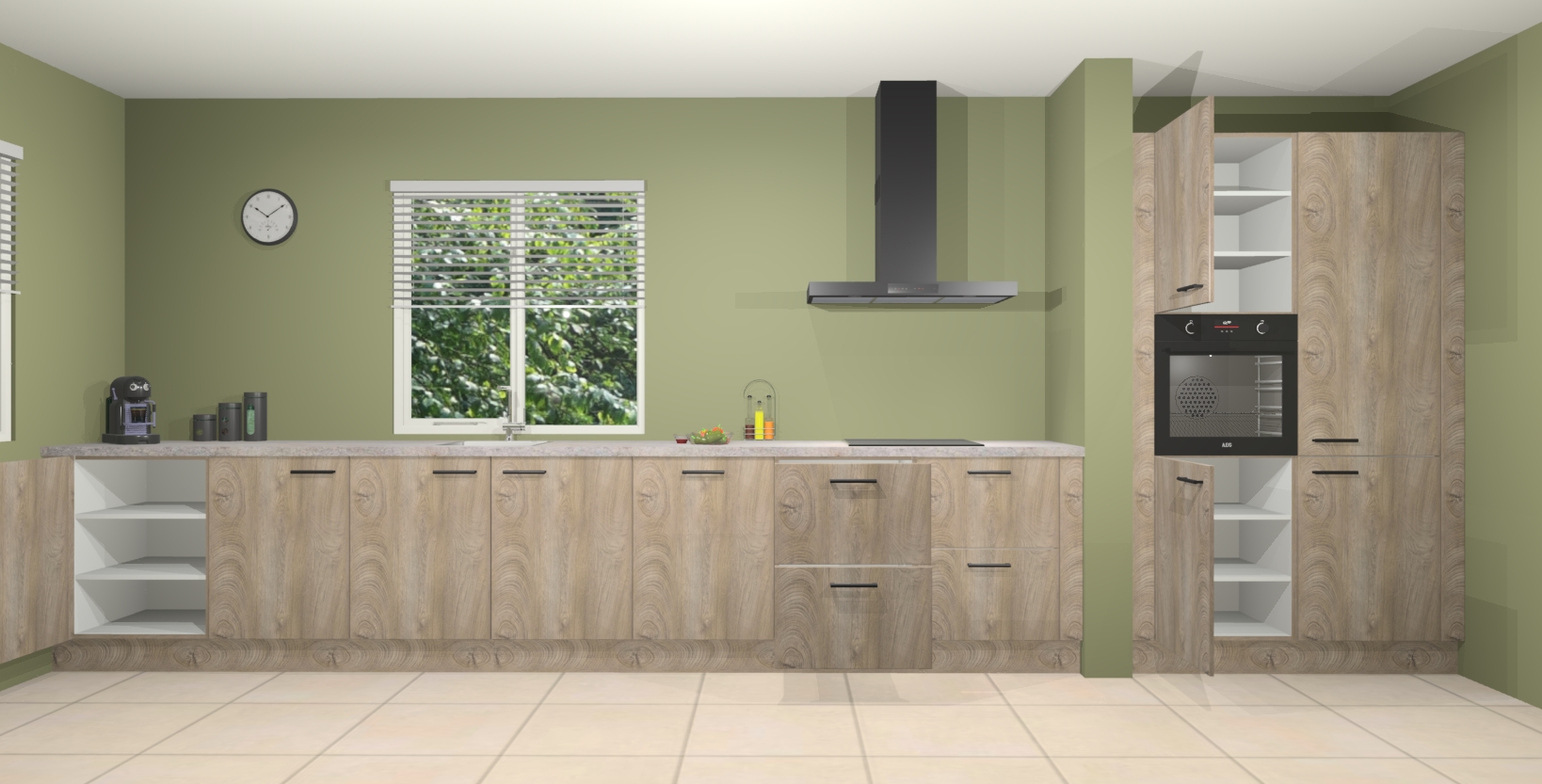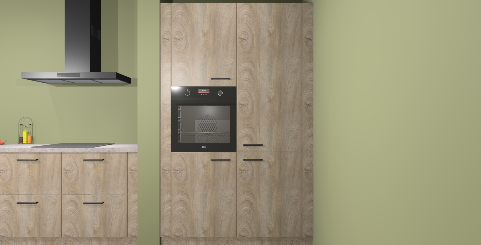 Maak kennis met de Cantaro eiken keuken Elzas - de perfecte aanvulling voor uw moderne keuken! Ervaar tijdloos design, elegantie en een chique uitstraling met onze handgrepen, soft-close deuren en veel opbergruimte. Dit alles wordt aangeboden tegen een vaste lage prijs voor ongeëvenaarde Duitse keukenkwaliteit!