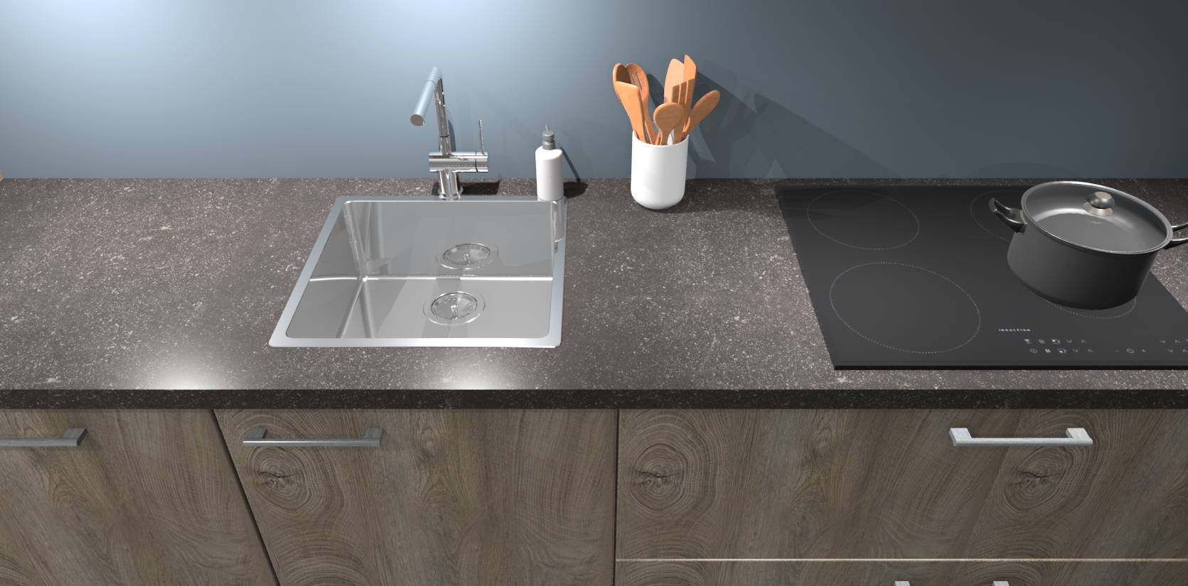- Bij een hoekwerkblad zijn de hoeken in gevreesd en op maat gemaakt