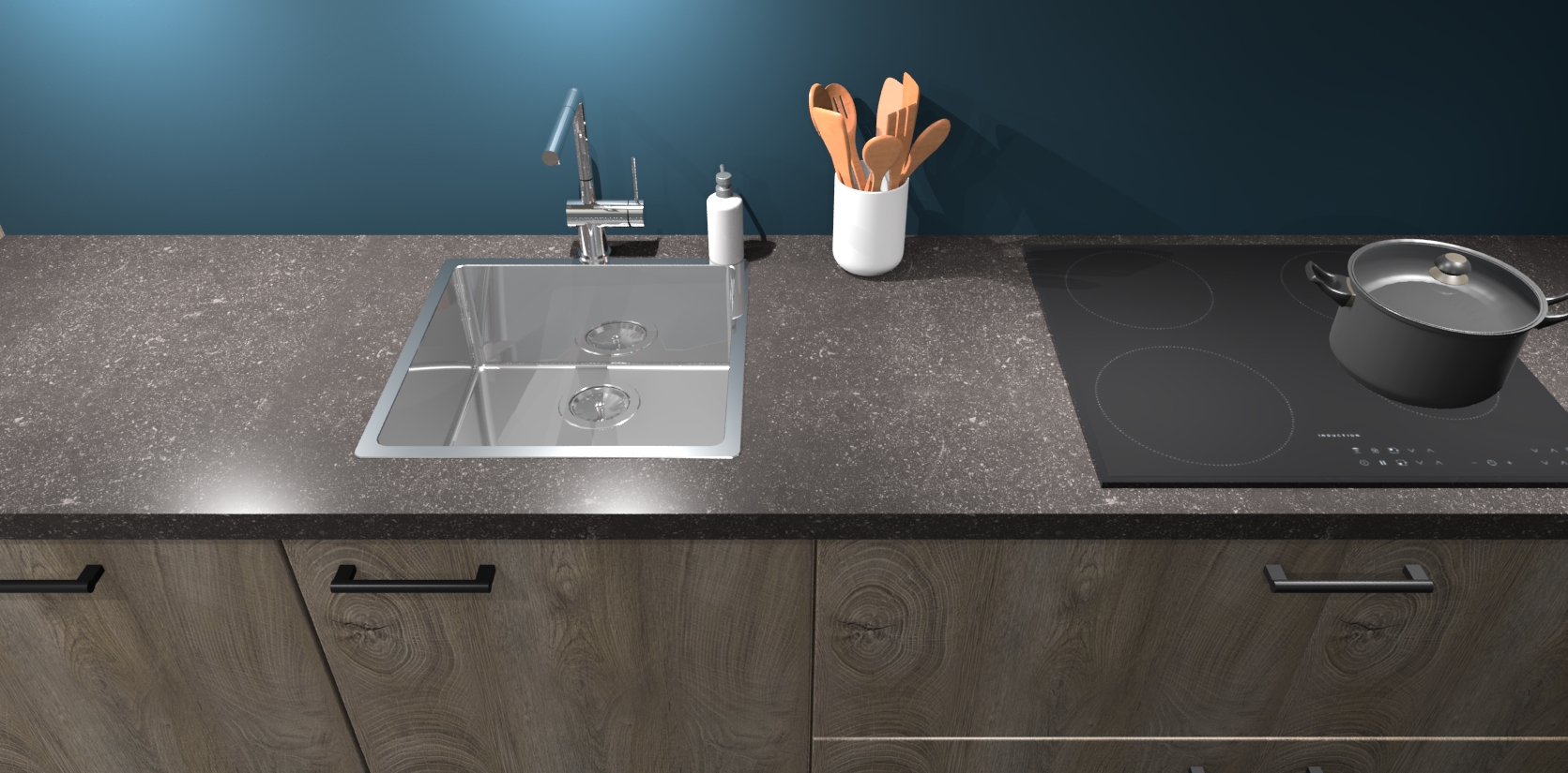 - Bij een hoekwerkblad zijn de hoeken in gevreesd en op maat gemaakt