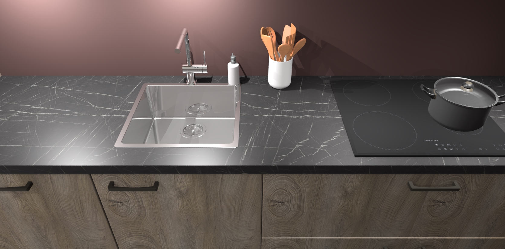 • Bij een hoekwerkblad zijn de hoeken in gevreesd en op maat gemaakt