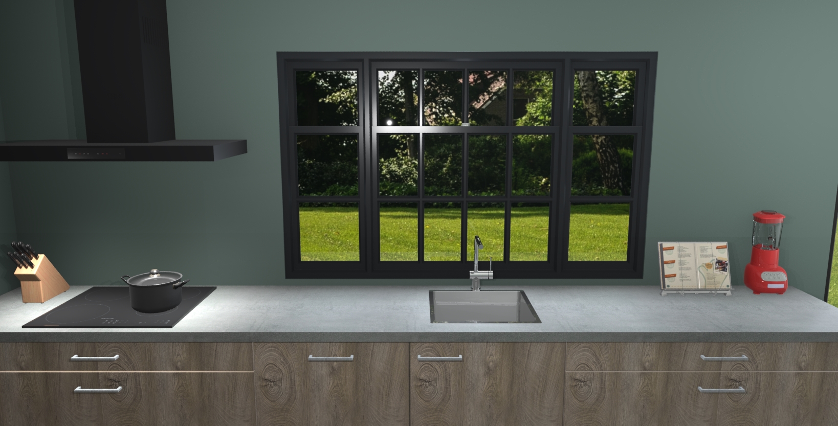 De softclose deuren openen en sluiten is ook heel eenvoudig - geniet van een moeiteloze keukenervaring, zelfs als er kinderen rondlopen. Voor extra gemak bij het plaatsen van uw bestelling bieden we ook een upgrade naar een kookplaat met geïntegreerde afzuiging.