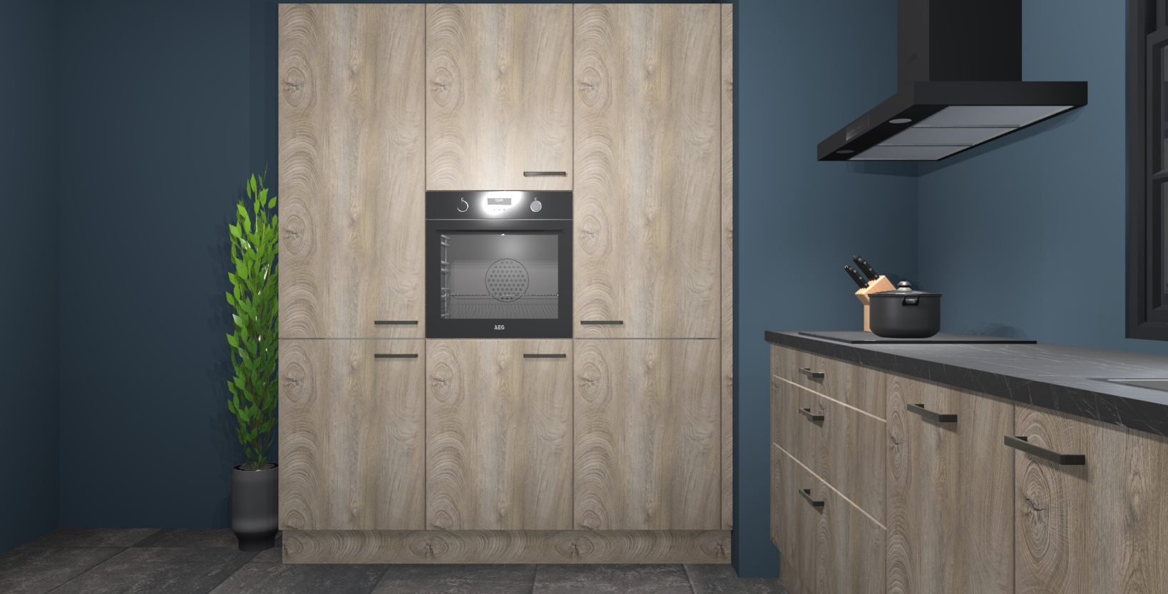 De softclose deuren openen en sluiten is ook heel eenvoudig - geniet van een moeiteloze keukenervaring, zelfs als er kinderen rondlopen. Voor extra gemak bij het plaatsen van uw bestelling bieden we ook een upgrade naar een kookplaat met geïntegreerde afzuiging.