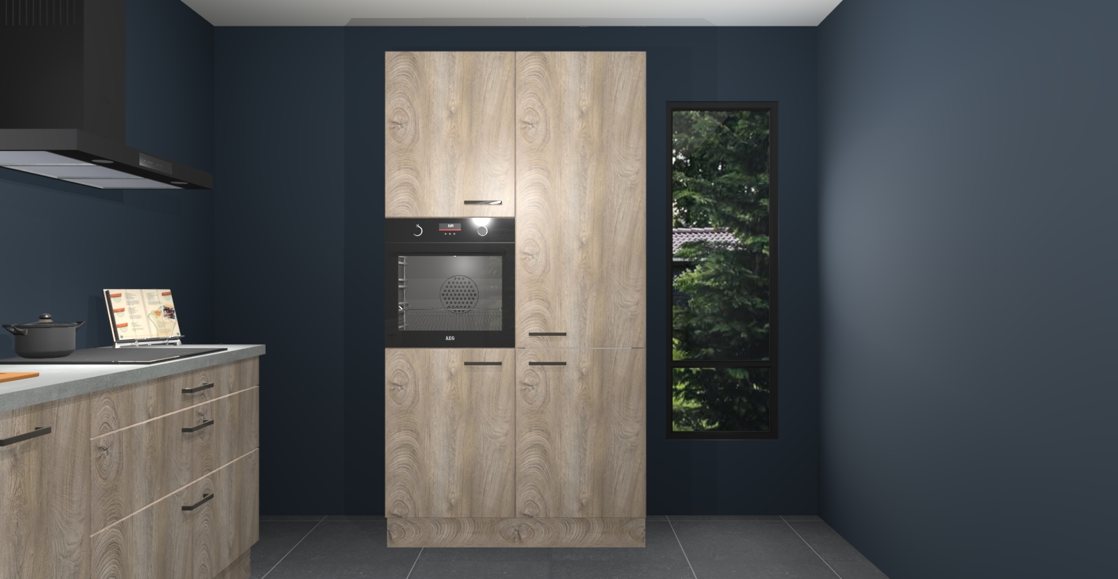 De setting is compleet gemaakt door de vijf inbouwapparaten: wanneer u gaat bestellen kunt u upgraden naar AEG-apparaten als oven, inductieplaat, afzuigkap, vaatwasser en koelkast. Kiest u voor onze Cantaro eiken keuken Monaco, dan weet u zeker dat u te maken heeft met Duitse kwaliteit. Bovendien is er altijd sprake van een lage prijs en profiteren we aantrekkelijk leveringstermijn: die bedraagt slechts 7 weken ! Om het extra makkelijk te maken worden de keukenkasten reeds voorgemonteerd geleverd.