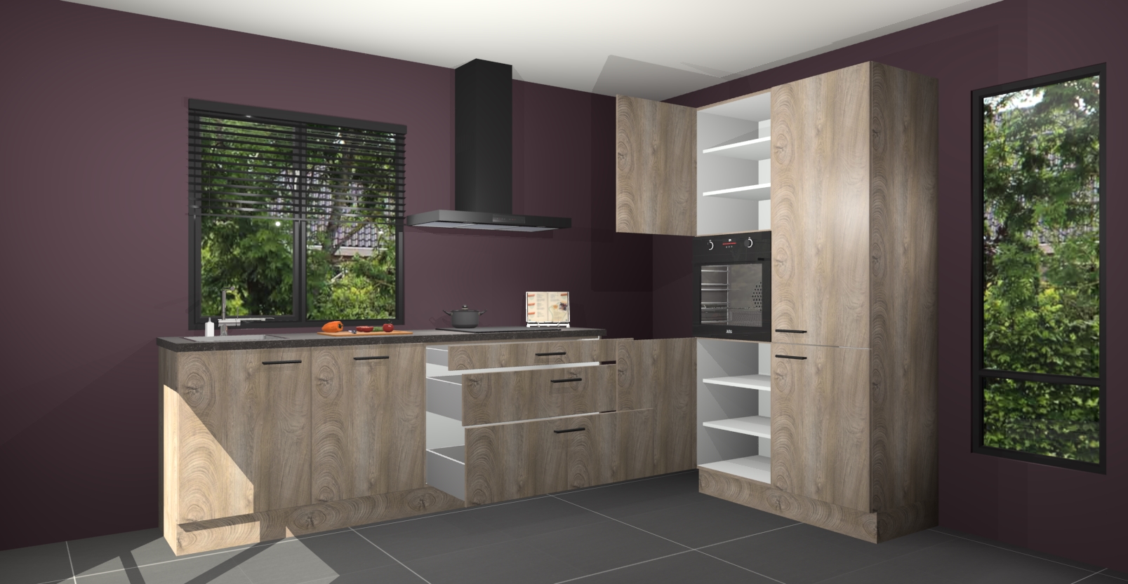 De setting is compleet gemaakt door de vijf inbouwapparaten: wanneer u gaat bestellen kunt u upgraden naar AEG-apparaten als oven, inductieplaat, afzuigkap, vaatwasser en koelkast. Kiest u voor onze Cantaro eiken keuken Monaco, dan weet u zeker dat u te maken heeft met Duitse kwaliteit. Bovendien is er altijd sprake van een lage prijs en profiteren we aantrekkelijk leveringstermijn: die bedraagt slechts 7 weken ! Om het extra makkelijk te maken worden de keukenkasten reeds voorgemonteerd geleverd.