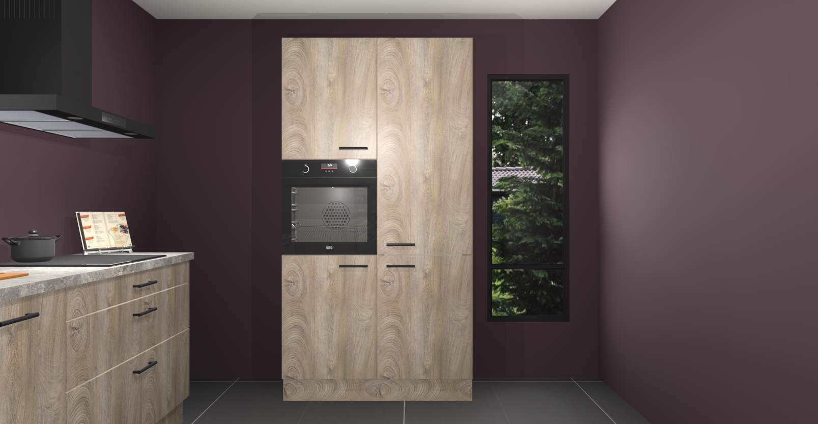 De setting is compleet gemaakt door de vijf inbouwapparaten: wanneer u gaat bestellen kunt u upgraden naar AEG-apparaten als oven, inductieplaat, afzuigkap, vaatwasser en koelkast. Kiest u voor onze Cantaro eiken keuken Monaco, dan weet u zeker dat u te maken heeft met Duitse kwaliteit. Bovendien is er altijd sprake van een lage prijs en profiteren we aantrekkelijk leveringstermijn: die bedraagt slechts 7 weken ! Om het extra makkelijk te maken worden de keukenkasten reeds voorgemonteerd geleverd.