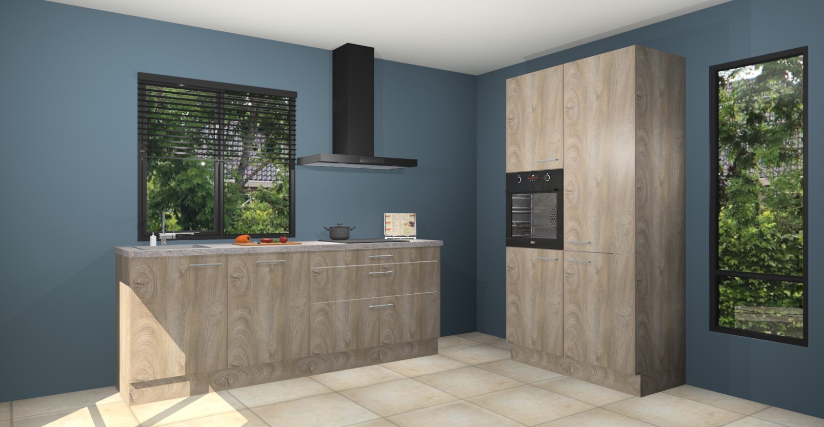 De setting is compleet gemaakt door de vijf inbouwapparaten: wanneer u gaat bestellen kunt u upgraden naar AEG-apparaten als oven, inductieplaat, afzuigkap, vaatwasser en koelkast. Kiest u voor onze Cantaro eiken keuken Monaco, dan weet u zeker dat u te maken heeft met Duitse kwaliteit. Bovendien is er altijd sprake van een lage prijs en profiteren we aantrekkelijk leveringstermijn: die bedraagt slechts 7 weken ! Om het extra makkelijk te maken worden de keukenkasten reeds voorgemonteerd geleverd.