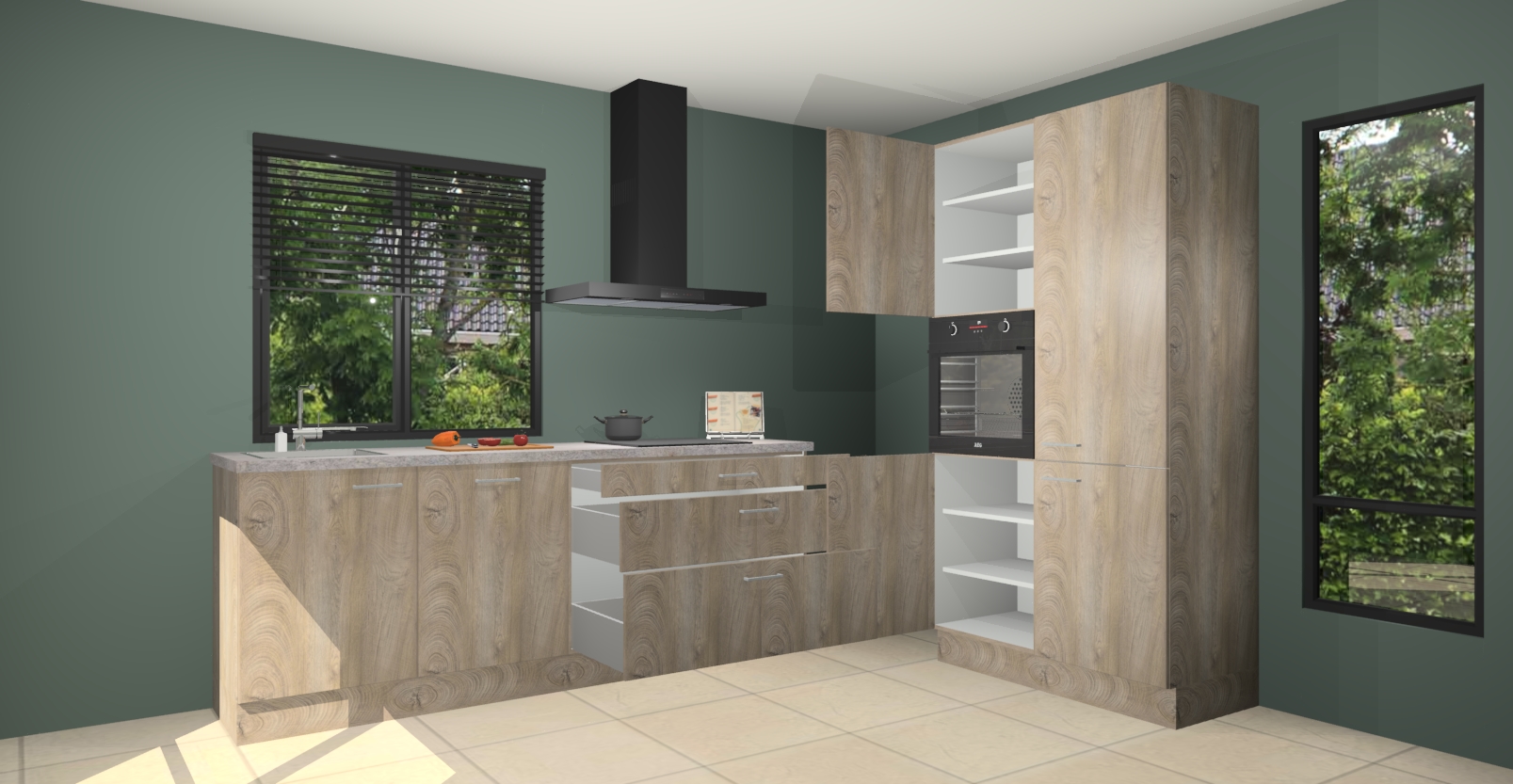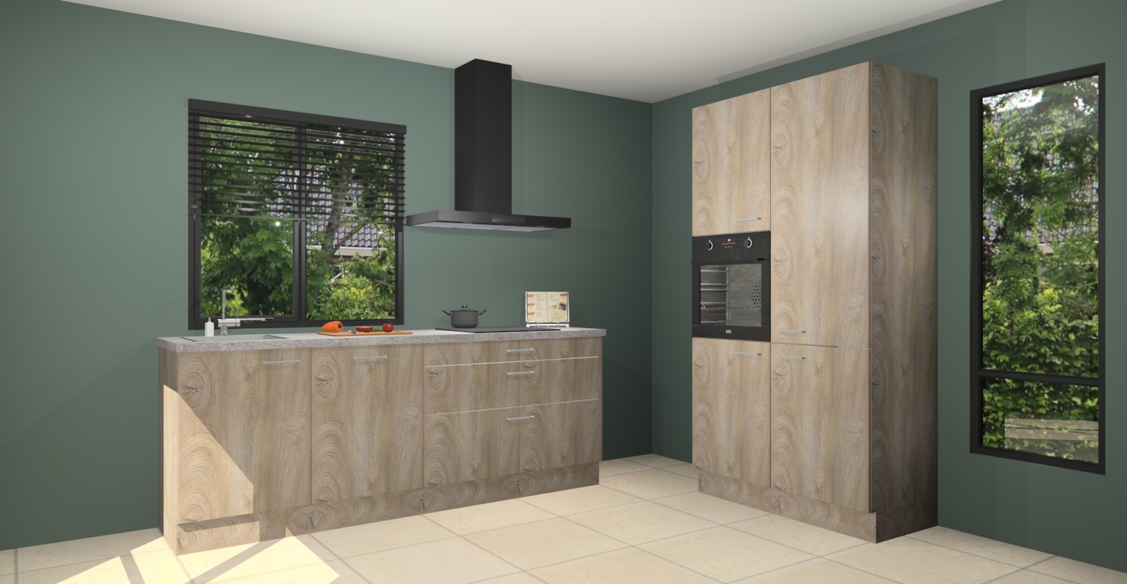 De setting is compleet gemaakt door de vijf inbouwapparaten: wanneer u gaat bestellen kunt u upgraden naar AEG-apparaten als oven, inductieplaat, afzuigkap, vaatwasser en koelkast. Kiest u voor onze Cantaro eiken keuken Monaco, dan weet u zeker dat u te maken heeft met Duitse kwaliteit. Bovendien is er altijd sprake van een lage prijs en profiteren we aantrekkelijk leveringstermijn: die bedraagt slechts 7 weken ! Om het extra makkelijk te maken worden de keukenkasten reeds voorgemonteerd geleverd.