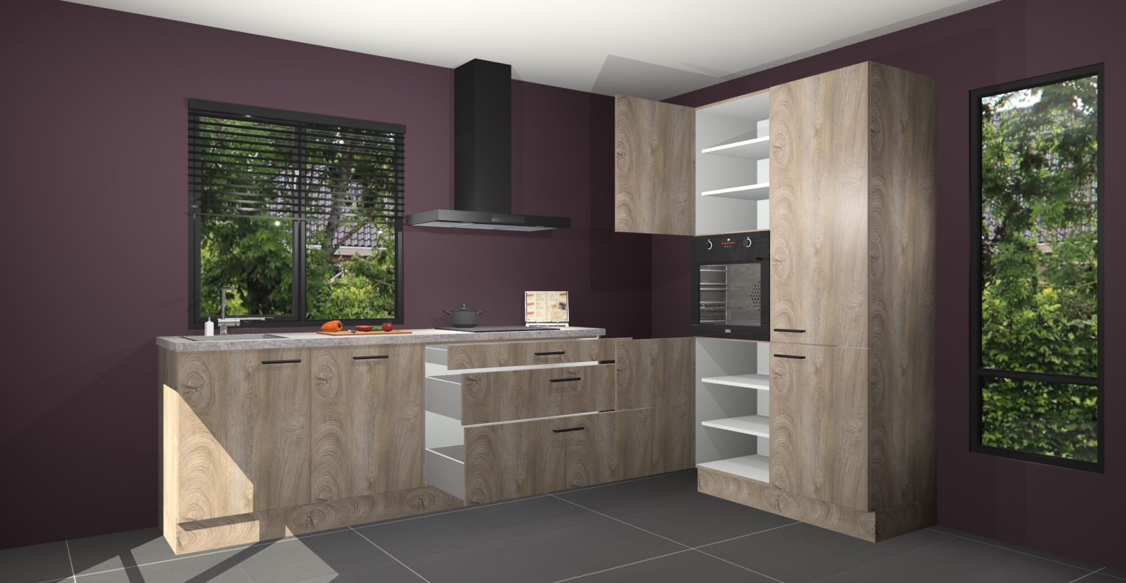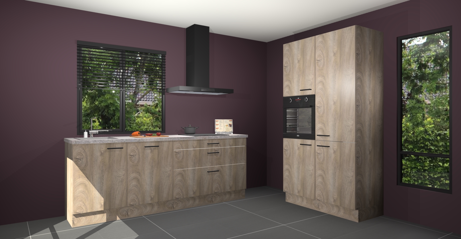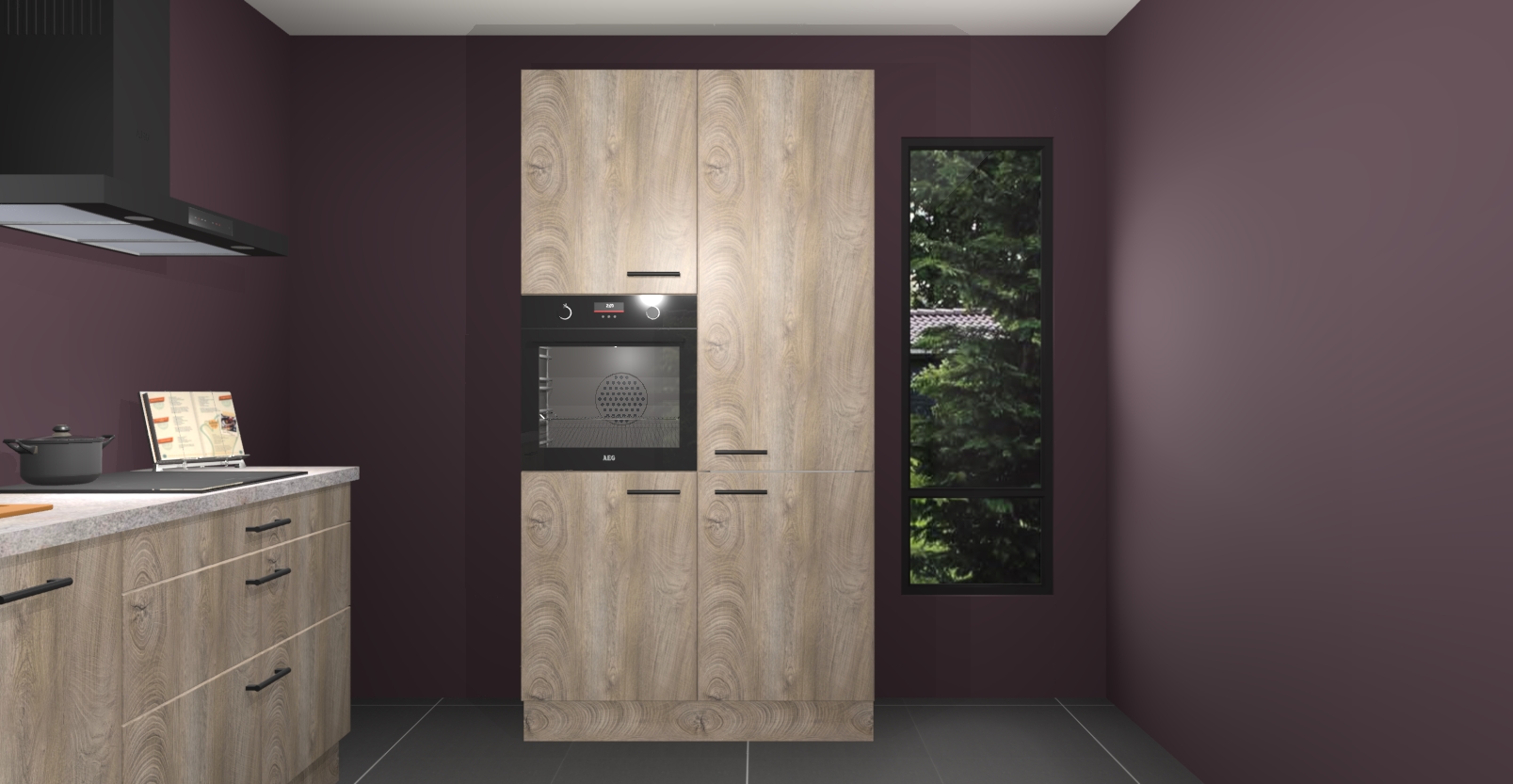 De setting is compleet gemaakt door de vijf inbouwapparaten: wanneer u gaat bestellen kunt u upgraden naar AEG-apparaten als oven, inductieplaat, afzuigkap, vaatwasser en koelkast. Kiest u voor onze Cantaro eiken keuken Monaco, dan weet u zeker dat u te maken heeft met Duitse kwaliteit. Bovendien is er altijd sprake van een lage prijs en profiteren we aantrekkelijk leveringstermijn: die bedraagt slechts 7 weken ! Om het extra makkelijk te maken worden de keukenkasten reeds voorgemonteerd geleverd.