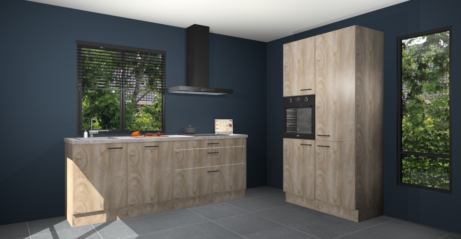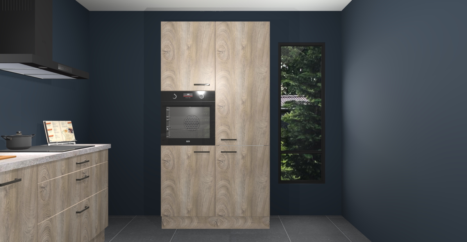 De setting is compleet gemaakt door de vijf inbouwapparaten: wanneer u gaat bestellen kunt u upgraden naar AEG-apparaten als oven, inductieplaat, afzuigkap, vaatwasser en koelkast. Kiest u voor onze Cantaro eiken keuken Monaco, dan weet u zeker dat u te maken heeft met Duitse kwaliteit. Bovendien is er altijd sprake van een lage prijs en profiteren we aantrekkelijk leveringstermijn: die bedraagt slechts 7 weken ! Om het extra makkelijk te maken worden de keukenkasten reeds voorgemonteerd geleverd.