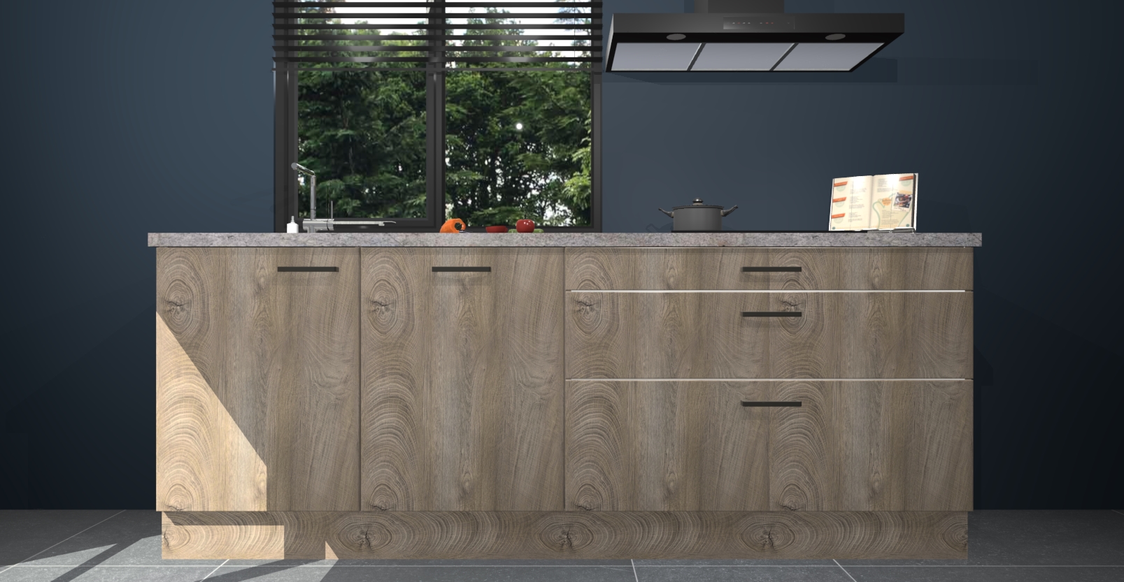 Inclusief plinten, stelpoten en werkblad
