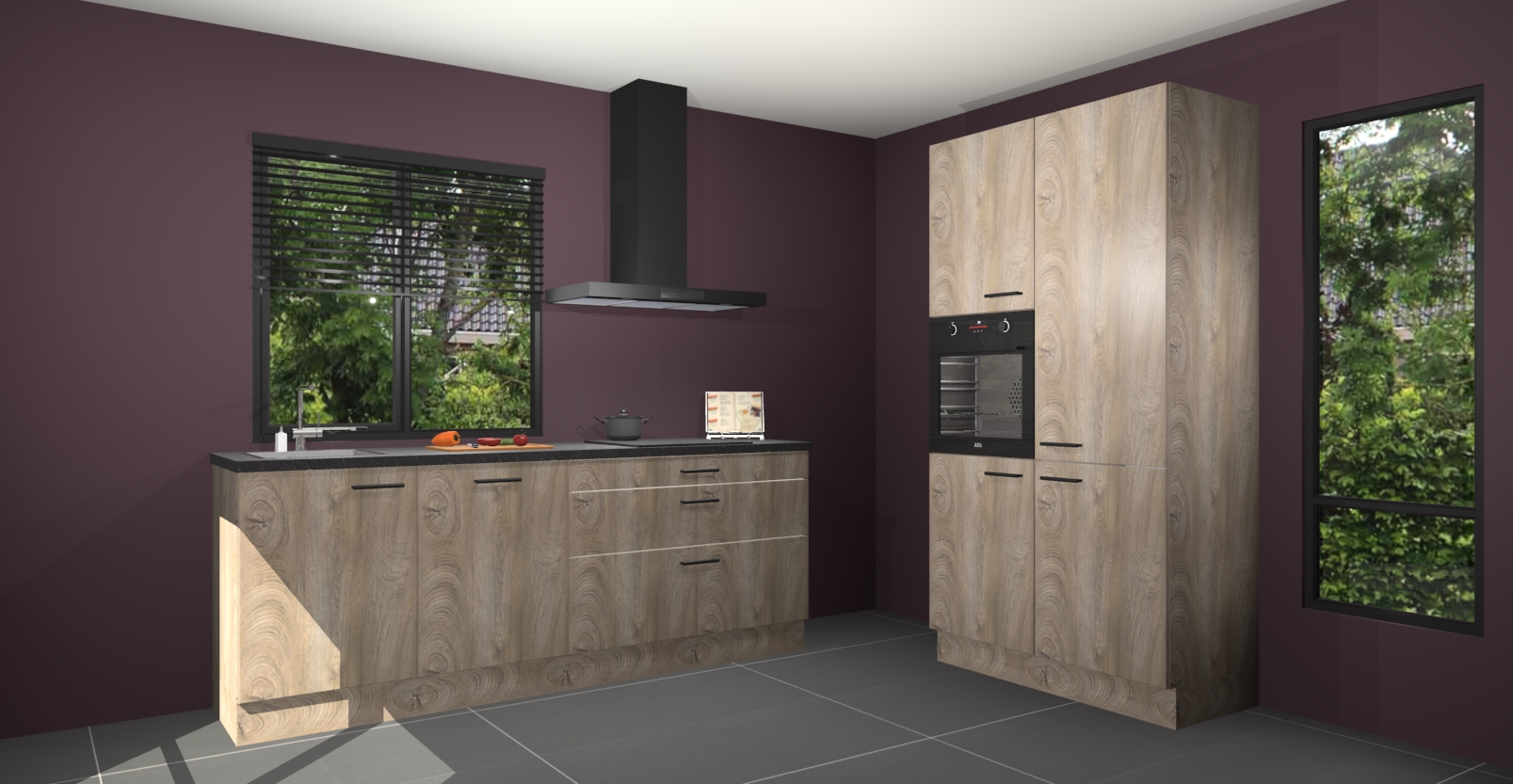 De setting is compleet gemaakt door de vijf inbouwapparaten: wanneer u gaat bestellen kunt u upgraden naar AEG-apparaten als oven, inductieplaat, afzuigkap, vaatwasser en koelkast. Kiest u voor onze Cantaro eiken keuken Monaco, dan weet u zeker dat u te maken heeft met Duitse kwaliteit. Bovendien is er altijd sprake van een lage prijs en profiteren we aantrekkelijk leveringstermijn: die bedraagt slechts 7 weken ! Om het extra makkelijk te maken worden de keukenkasten reeds voorgemonteerd geleverd.