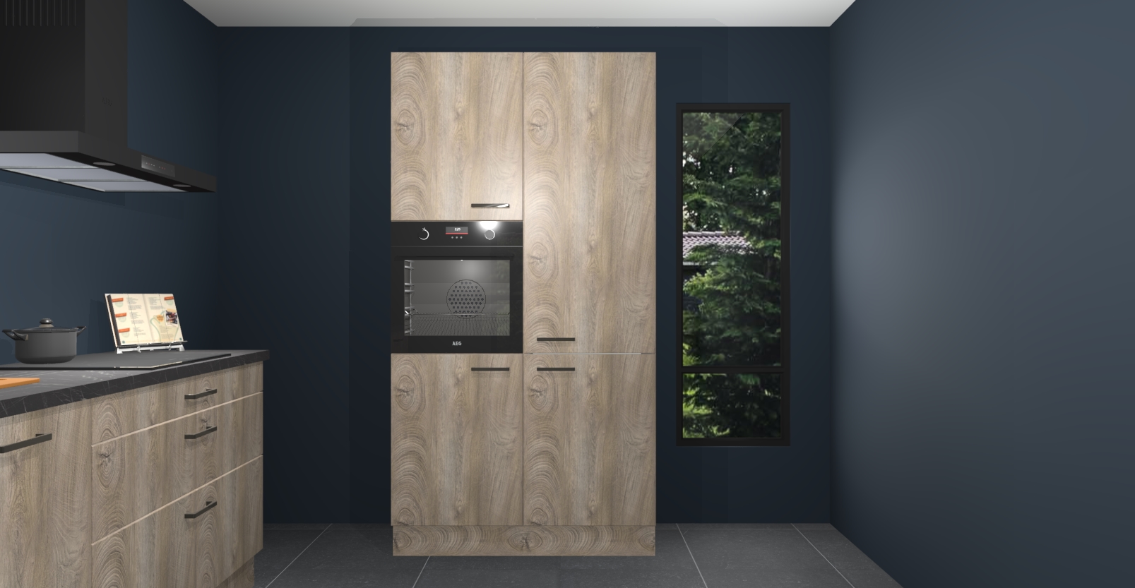 De setting is compleet gemaakt door de vijf inbouwapparaten: wanneer u gaat bestellen kunt u upgraden naar AEG-apparaten als oven, inductieplaat, afzuigkap, vaatwasser en koelkast. Kiest u voor onze Cantaro eiken keuken Monaco, dan weet u zeker dat u te maken heeft met Duitse kwaliteit. Bovendien is er altijd sprake van een lage prijs en profiteren we aantrekkelijk leveringstermijn: die bedraagt slechts 7 weken ! Om het extra makkelijk te maken worden de keukenkasten reeds voorgemonteerd geleverd.