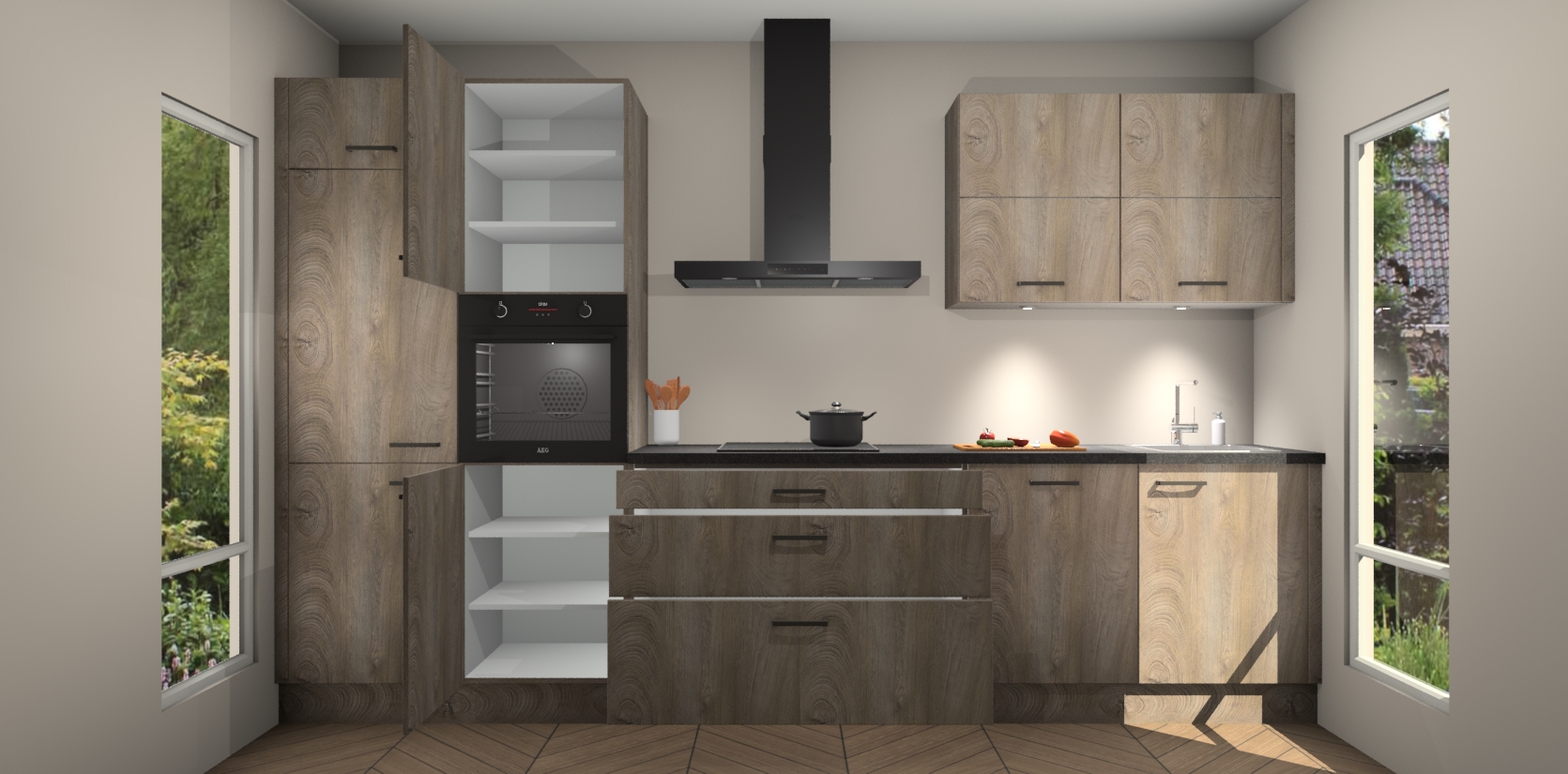 Met een levering binnen 7 weken na bestelling heeft deze keuken bovendien geen last van de ongemakkelijke lange wachttijden die bij andere keukens horen - geen vertragingen meer; gewoon snel resultaat! Krijg meteen die droomkeuken look met de Cantaro Eiken keuken Parijs!