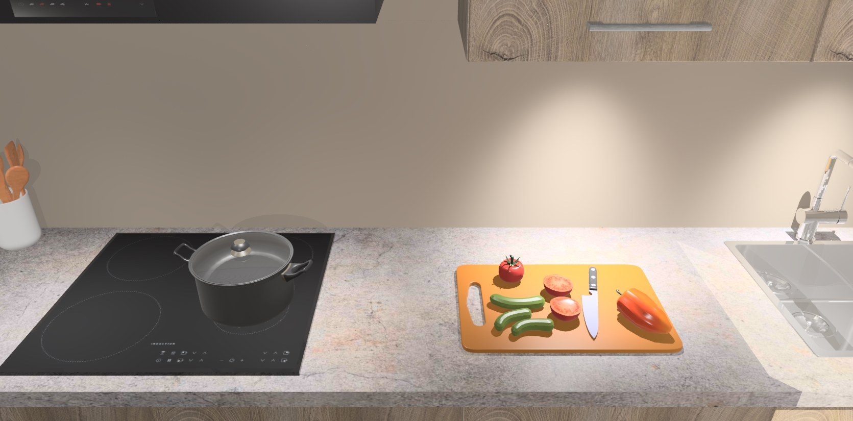 - Uitsparing van kookplaat, spoelbak en kraan dient u zelf te verzorgen.