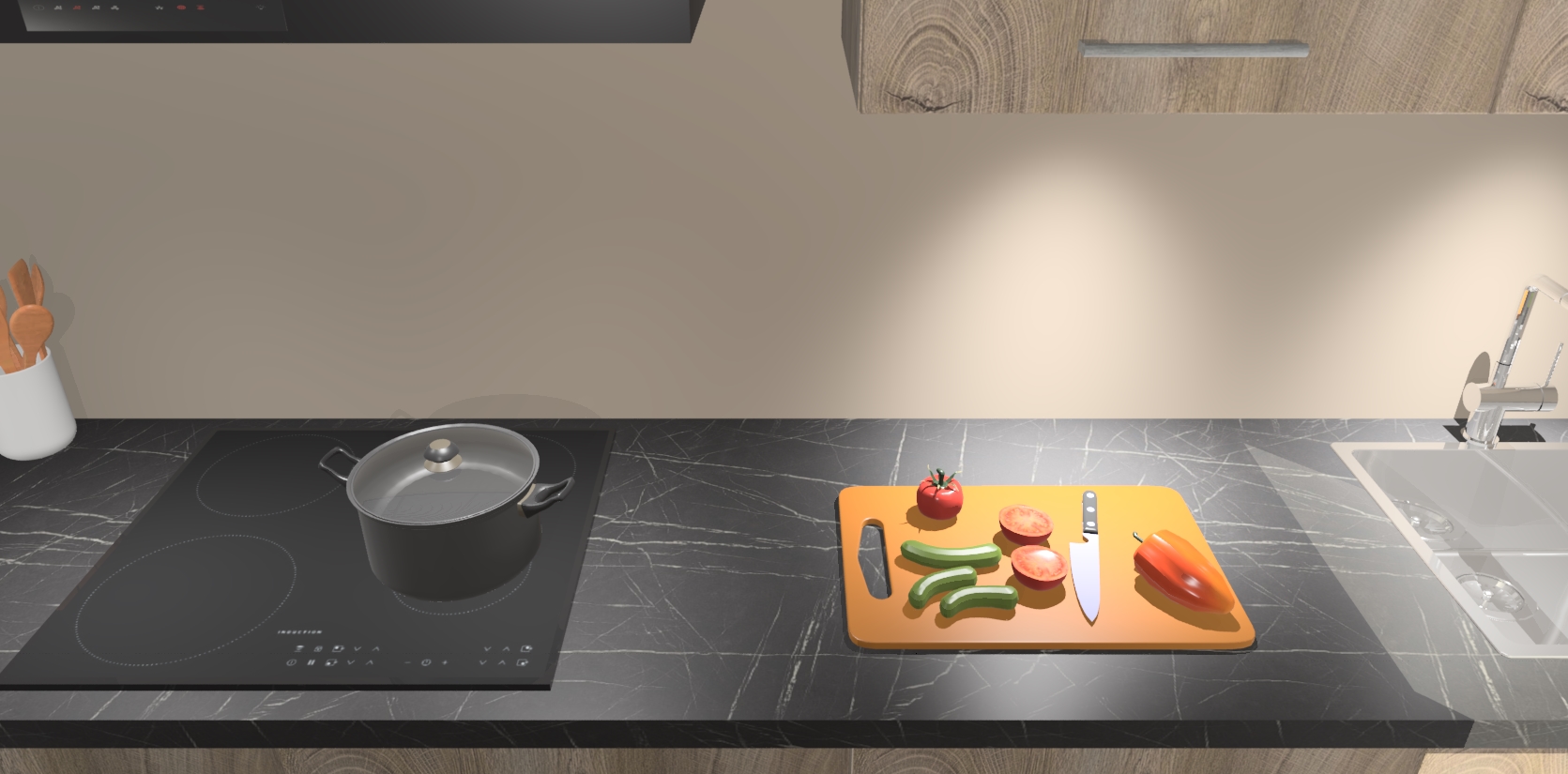 - Uitsparing van kookplaat, spoelbak en kraan dient u zelf te verzorgen.
