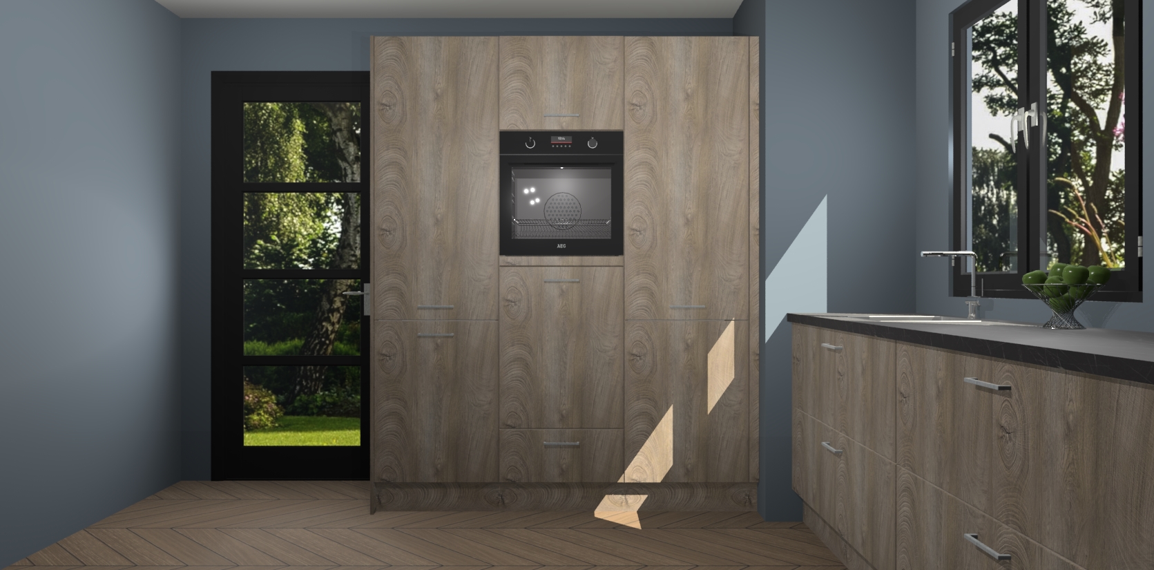 De softclose deuren openen en sluiten is ook heel eenvoudig - geniet van een moeiteloze keukenervaring, zelfs als er kinderen rondlopen. Voor extra gemak bij het plaatsen van uw bestelling bieden we ook een upgrade naar een kookplaat met geïntegreerde afzuiging.