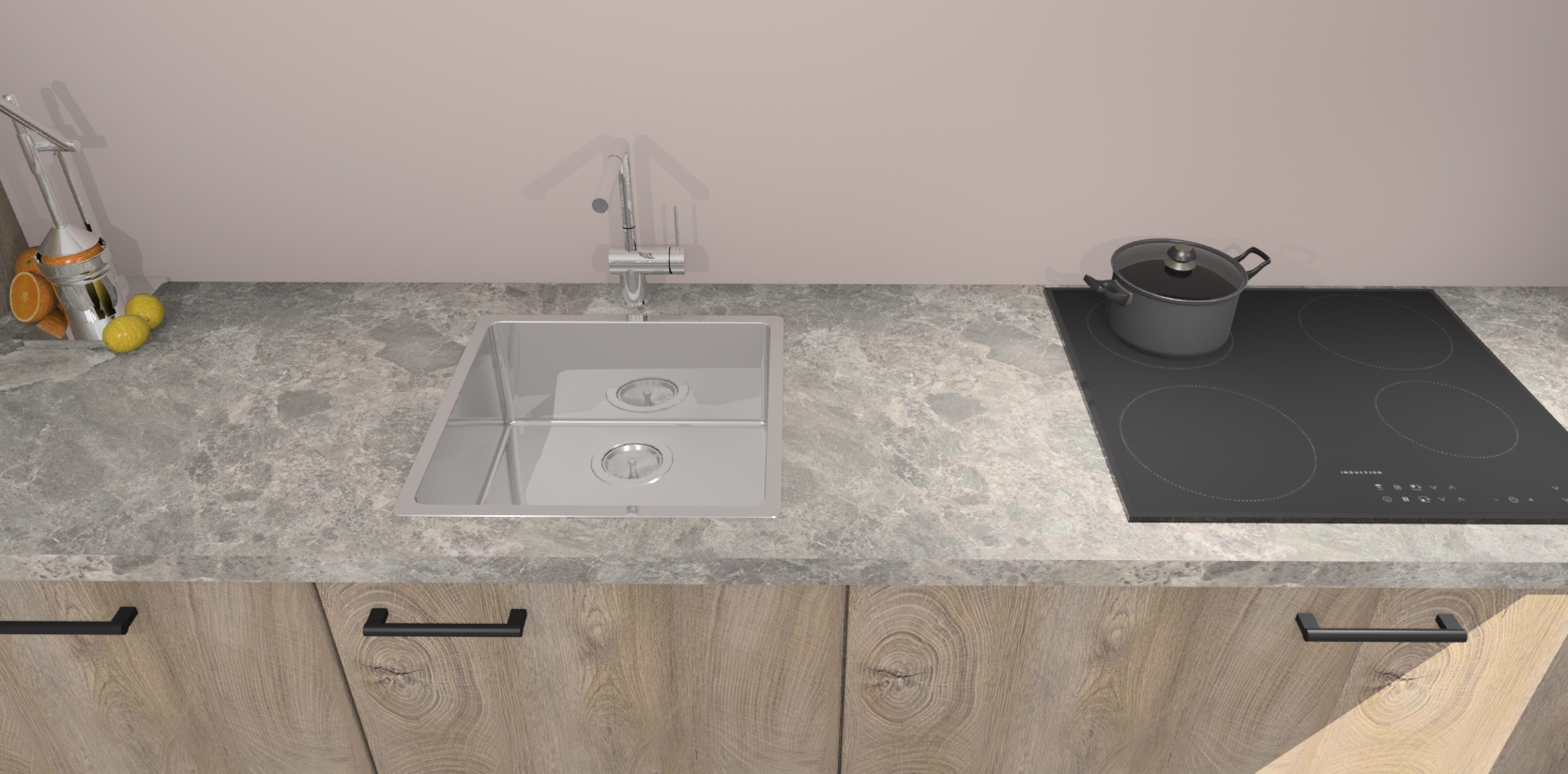 - Uitsparing van kookplaat, spoelbak en kraan dient u zelf te verzorgen.