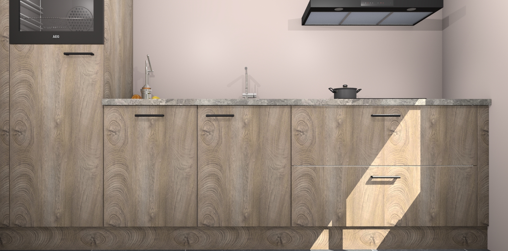 Maak kennis met de gloednieuwe Cantaro Eiken keuken Tokelau! Met zijn chique, moderne uitstraling is dit product perfect voor iedereen die een warm en toch strak design voor zijn huis wil.