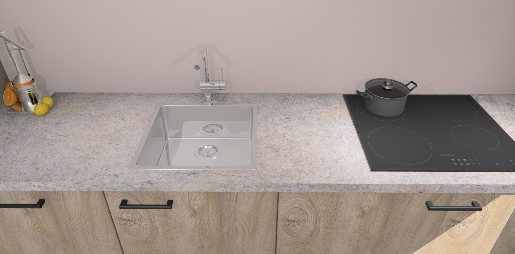 - Uitsparing van kookplaat, spoelbak en kraan dient u zelf te verzorgen.