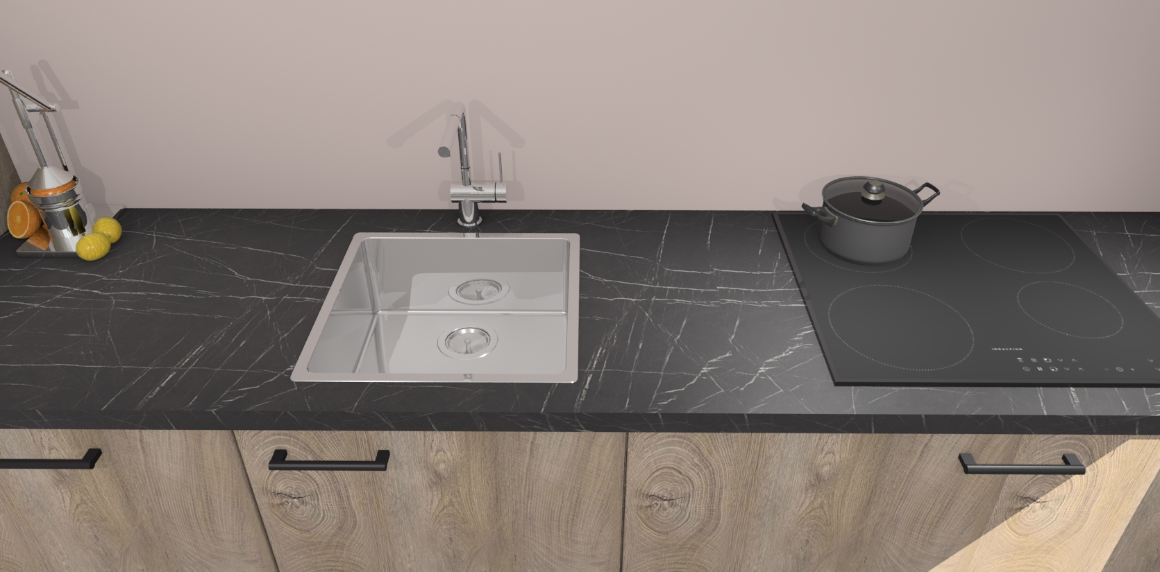 • Uitsparing van kookplaat, spoelbak en kraan dient u zelf te verzorgen.