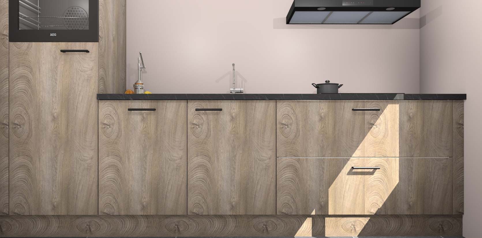 Maak kennis met de gloednieuwe Cantaro Eiken keuken Tokelau! Met zijn chique, moderne uitstraling is dit product perfect voor iedereen die een warm en toch strak design voor zijn huis wil.
