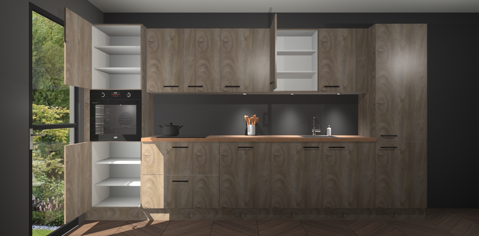 Dit is de perfecte keuken voor wie op zoek is naar een luxueuze stijl zonder zijn portemonnee te legen! Het chique ontwerp van de cantaro eiken keuken Wels voegt dat vleugje verfijning toe aan elk huis. Het gemak van voorgemonteerde kasten bespaart u talloze uren tijd en energie, zodat u veel sneller dan verwacht kunt beginnen te genieten van uw prachtige nieuwe keuken. Bovendien bedraagt de levertijd slechts 7 weken.