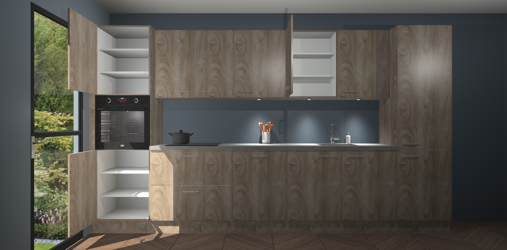 Dit is de perfecte keuken voor wie op zoek is naar een luxueuze stijl zonder zijn portemonnee te legen! Het chique ontwerp van de cantaro eiken keuken Wels voegt dat vleugje verfijning toe aan elk huis. Het gemak van voorgemonteerde kasten bespaart u talloze uren tijd en energie, zodat u veel sneller dan verwacht kunt beginnen te genieten van uw prachtige nieuwe keuken. Bovendien bedraagt de levertijd slechts 7 weken.