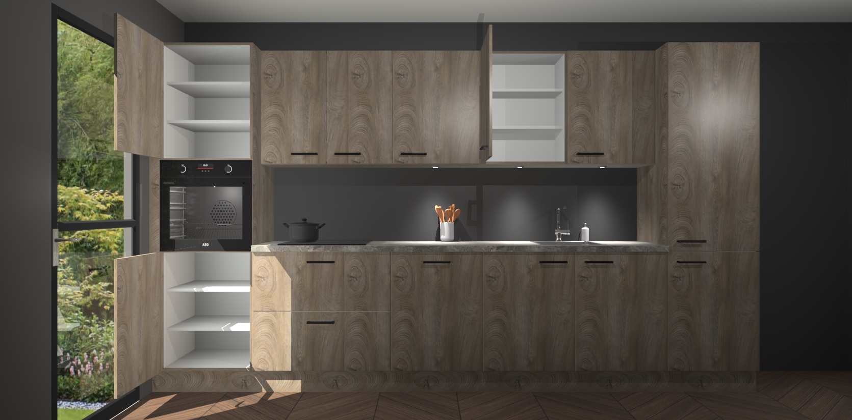 Dit is de perfecte keuken voor wie op zoek is naar een luxueuze stijl zonder zijn portemonnee te legen! Het chique ontwerp van de cantaro eiken keuken Wels voegt dat vleugje verfijning toe aan elk huis. Het gemak van voorgemonteerde kasten bespaart u talloze uren tijd en energie, zodat u veel sneller dan verwacht kunt beginnen te genieten van uw prachtige nieuwe keuken. Bovendien bedraagt de levertijd slechts 7 weken.